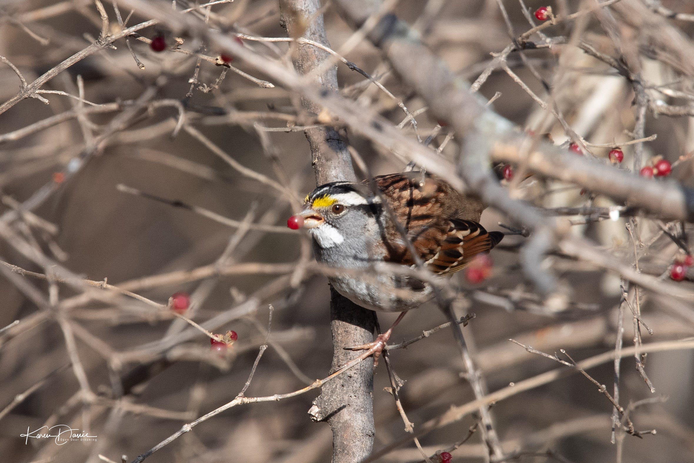 The white-throated sparrows wanted in on the photo shoot too.
