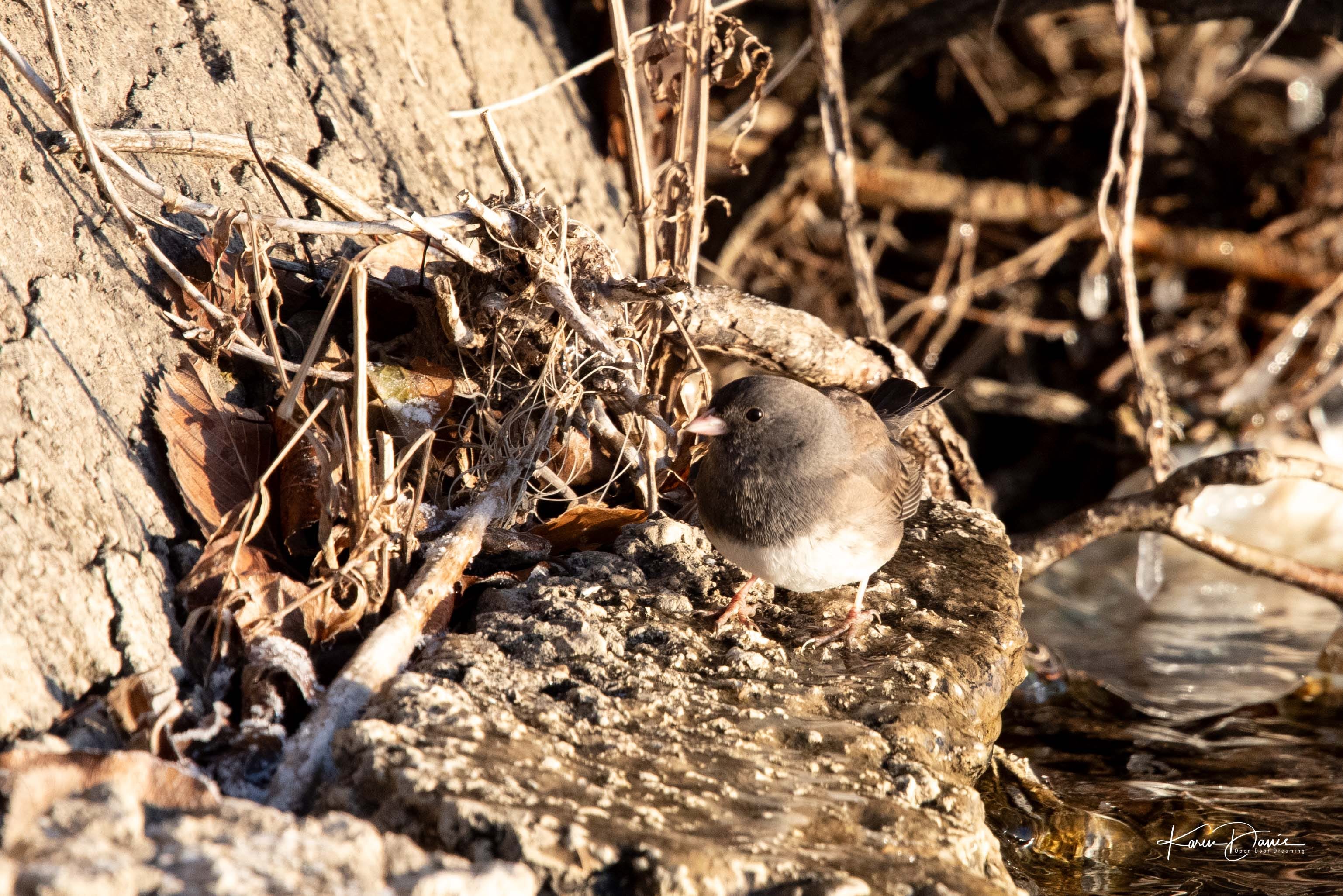 Our most abundant winter sparrows - and brave little explorers - are the dark-eyed juncos. They are the only bird that doesn’t seem to like it when I sit on the ground.