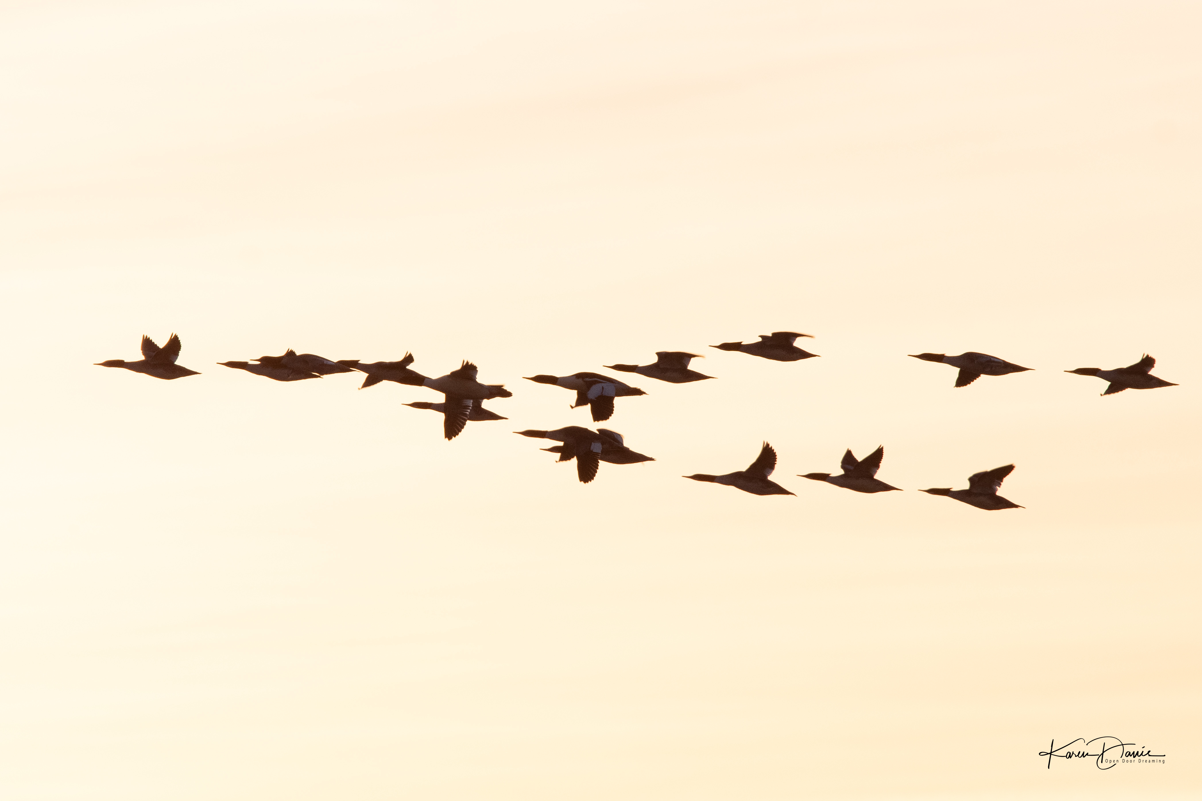 There are common mergansers around, but they have way too many places to hide right now, so I only see them on flybys.