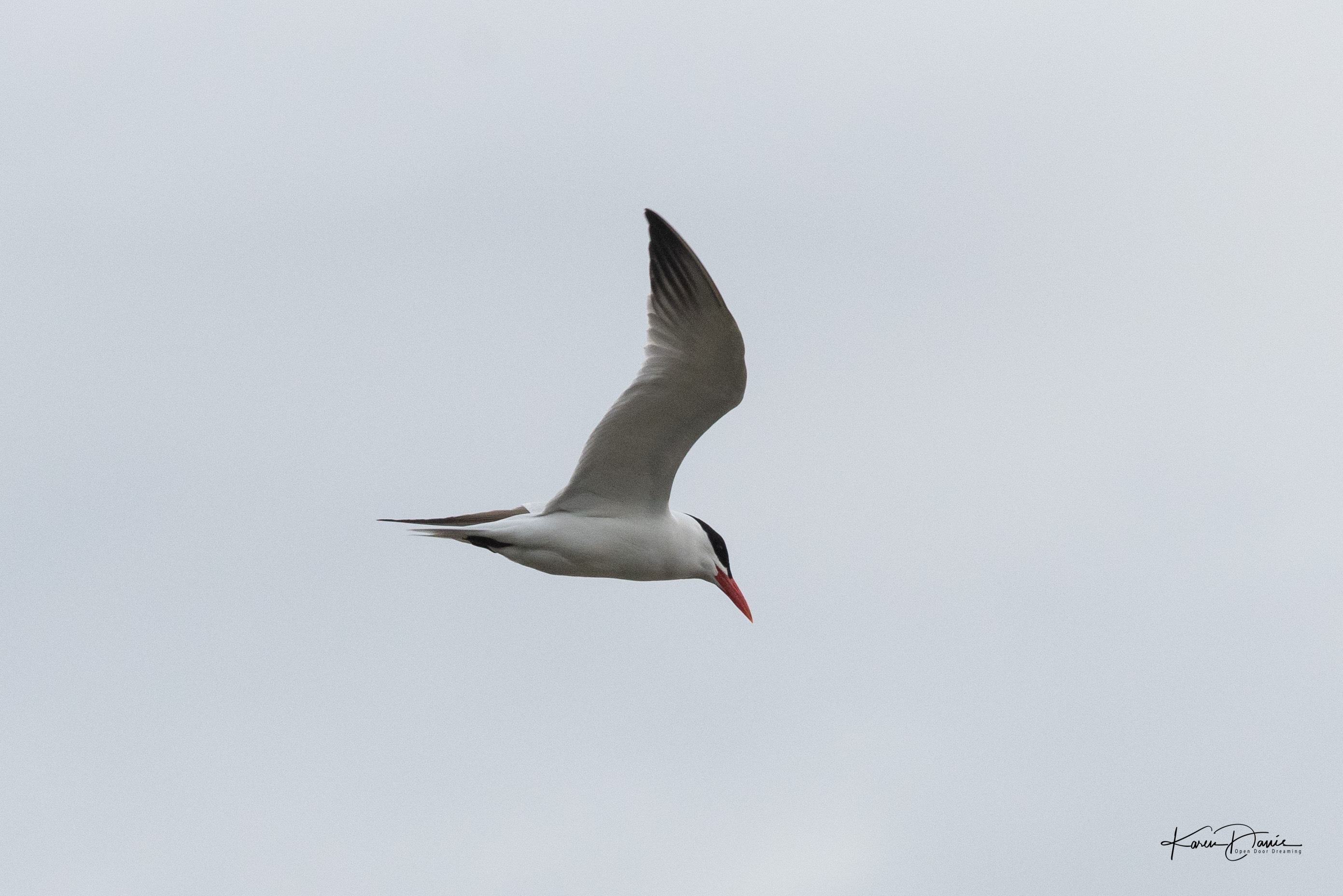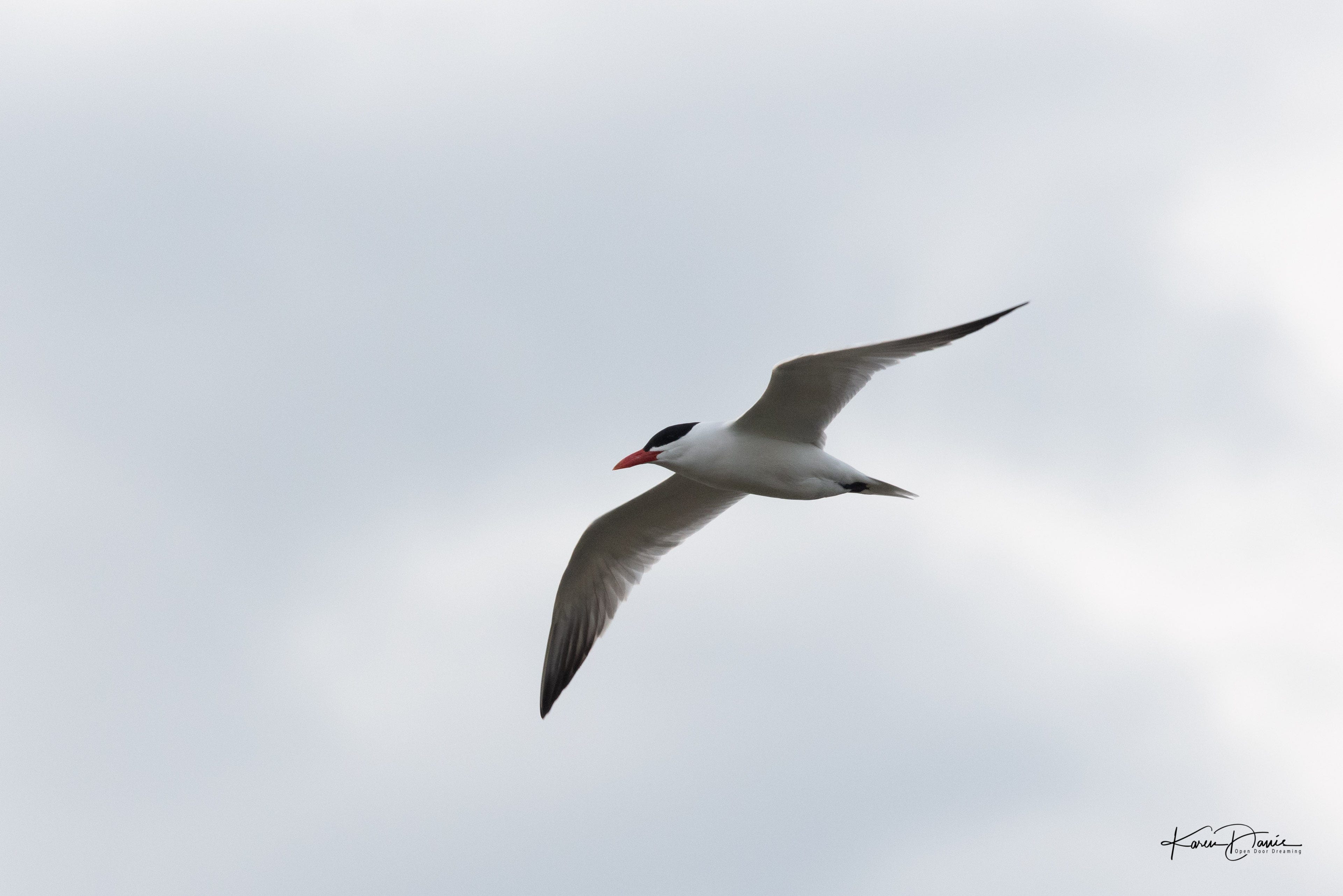 Caspian terns have a special place in my heart. One fall I helped rescue a young Caspian tern that had been separated from its flock and after the wonderful wildlife rehab nursed it back to health, I helped release it on a day when another flock was traveling through. Another year I enlisted the help of the marina managers and fishermen to feed a youngster who was on his own. Caspian terns seem to me to be very joyful birds and I love when I get a glimpse, even just a flyby.