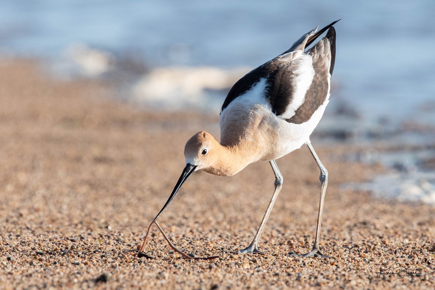 Why avocets? Perhaps their long, curved bill - especially watching them preen themselves with that sword that looks like trying to brush your hair with scissors. The way their blue legs offset their brown, black and white feathers. The way they bounce up and down as they stand near the water, like the whack-a-mole game we played in an arcade as a child. When they are in a flock you see one head bob up, then another.
