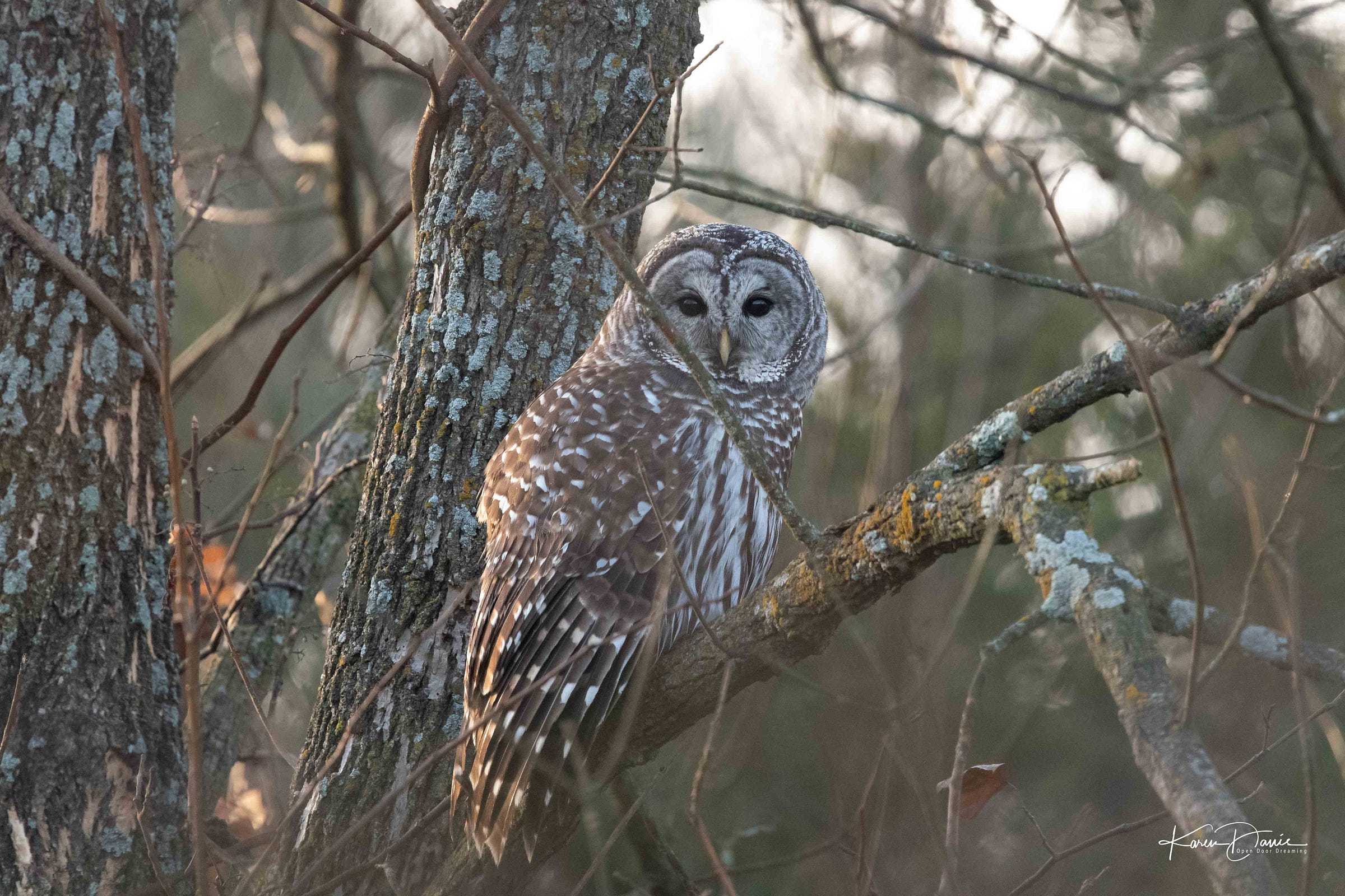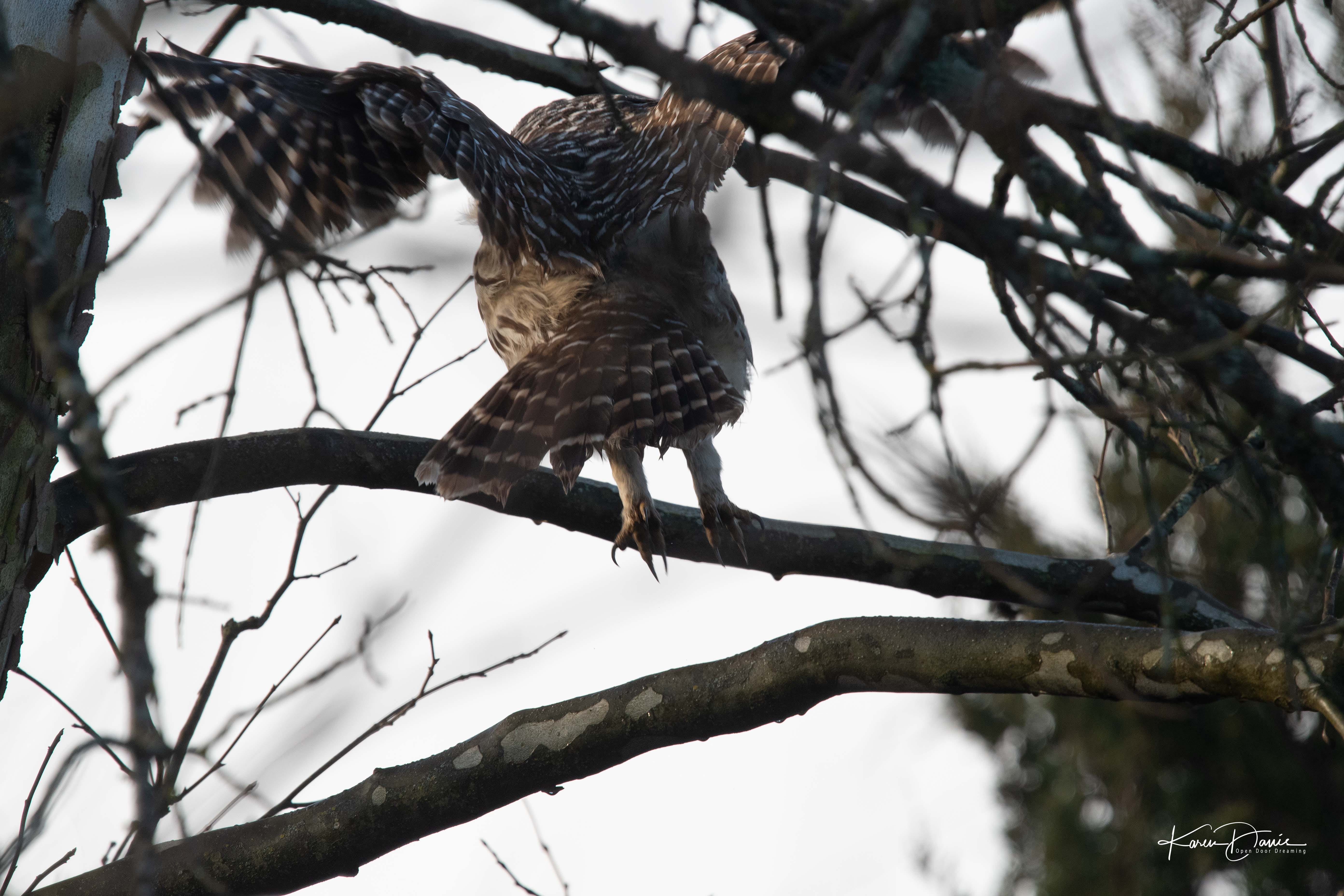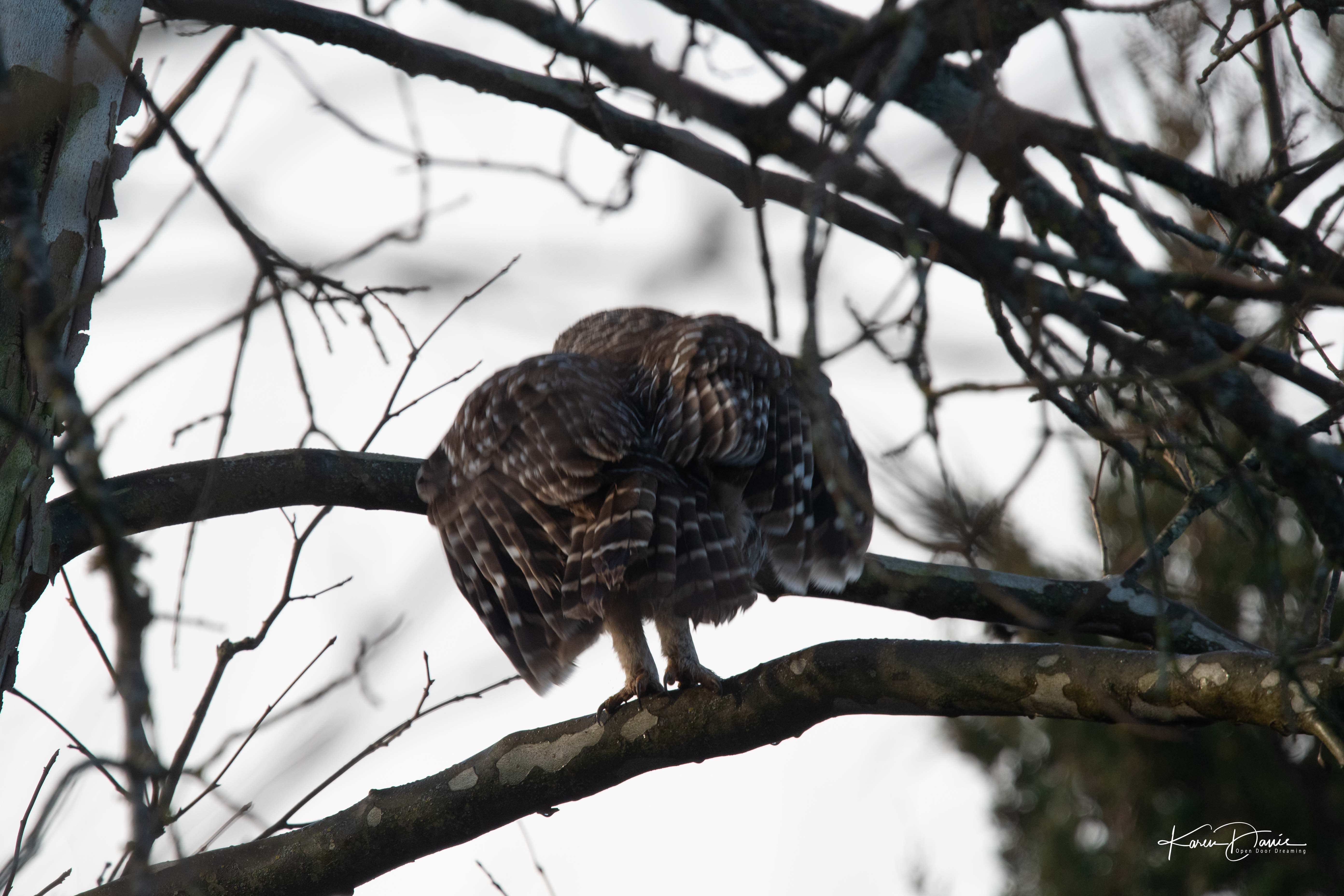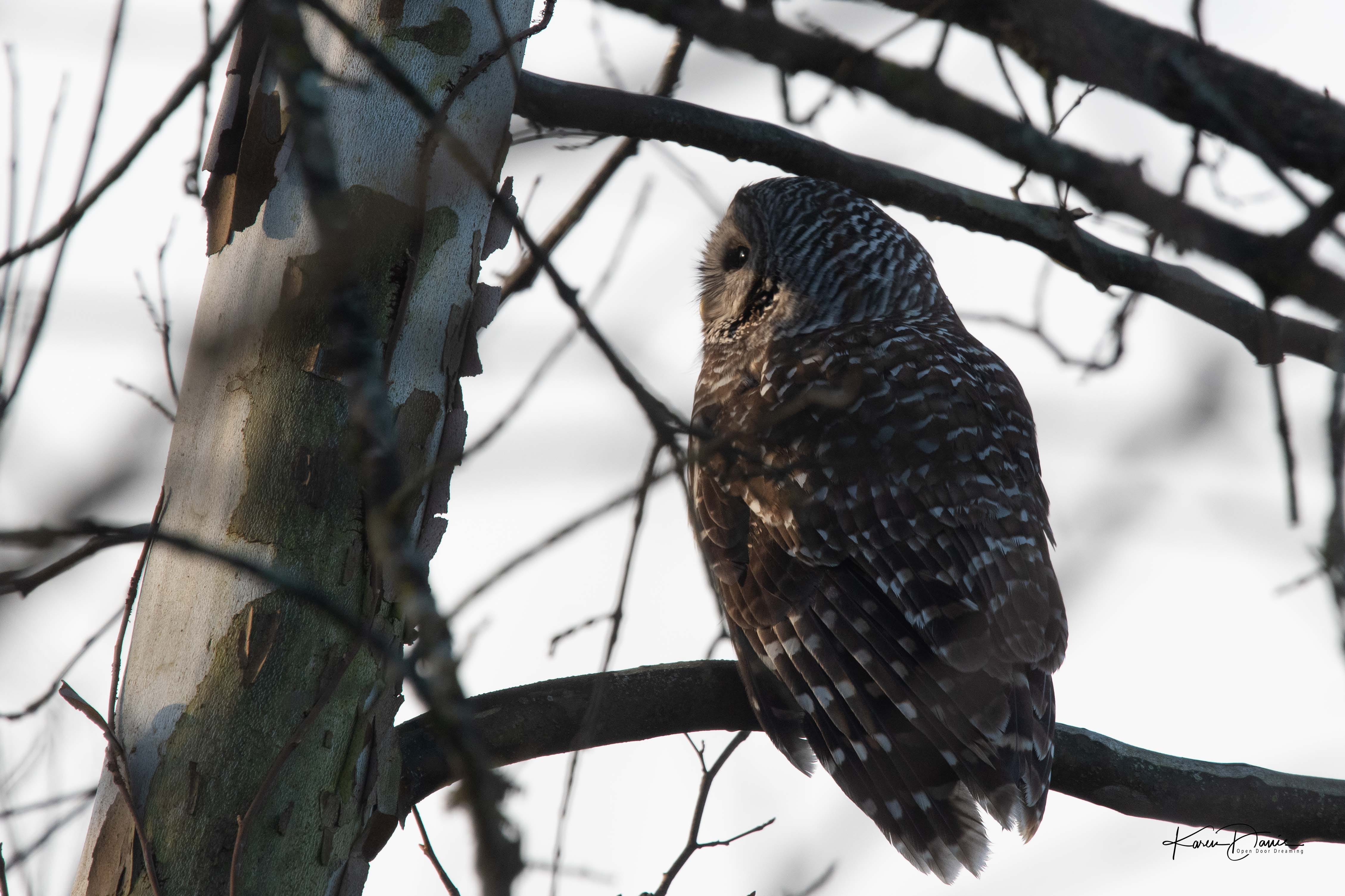 The owls have been present for me this week, as they were at this time last year and when my mother died. The first bird I saw on January 1 was a barred owl that flew over the road as I left the subdivision, and this morning, as I walked in the dark, there was an owl perched in a tree half a block from my home.