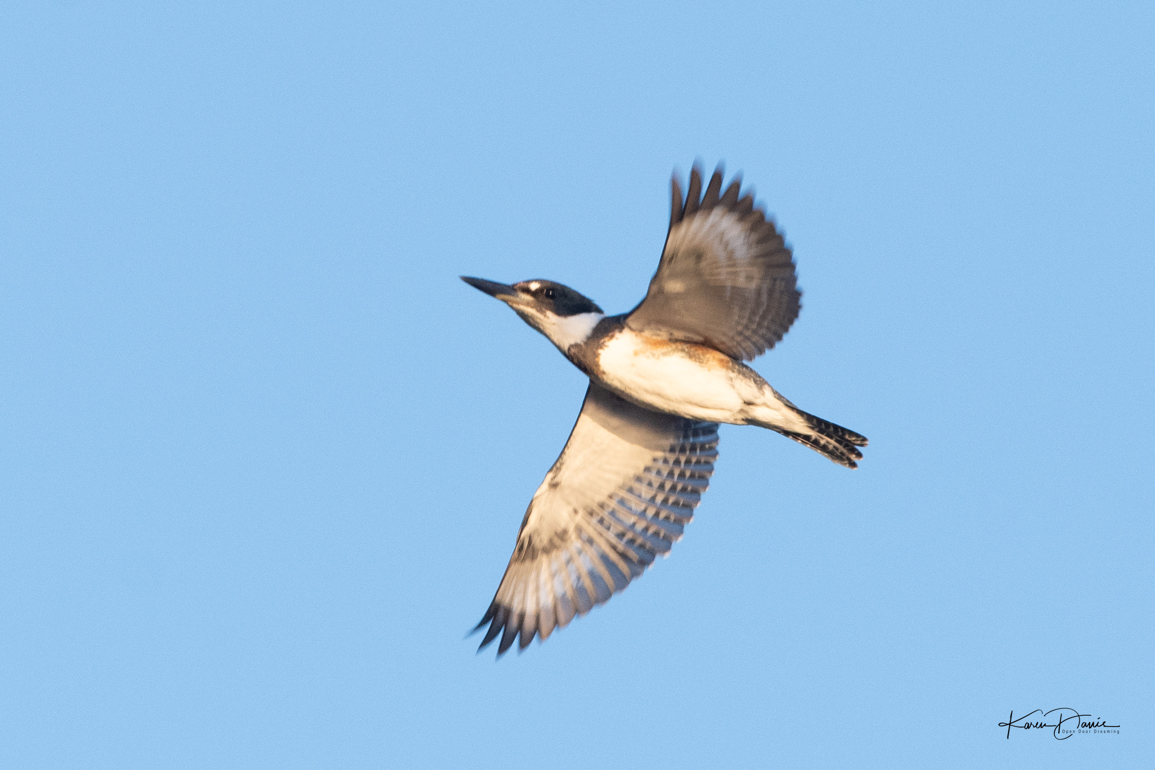 My kingfisher friends announce their presence, too, but it’s still a challenge to photograph them as they fly by.