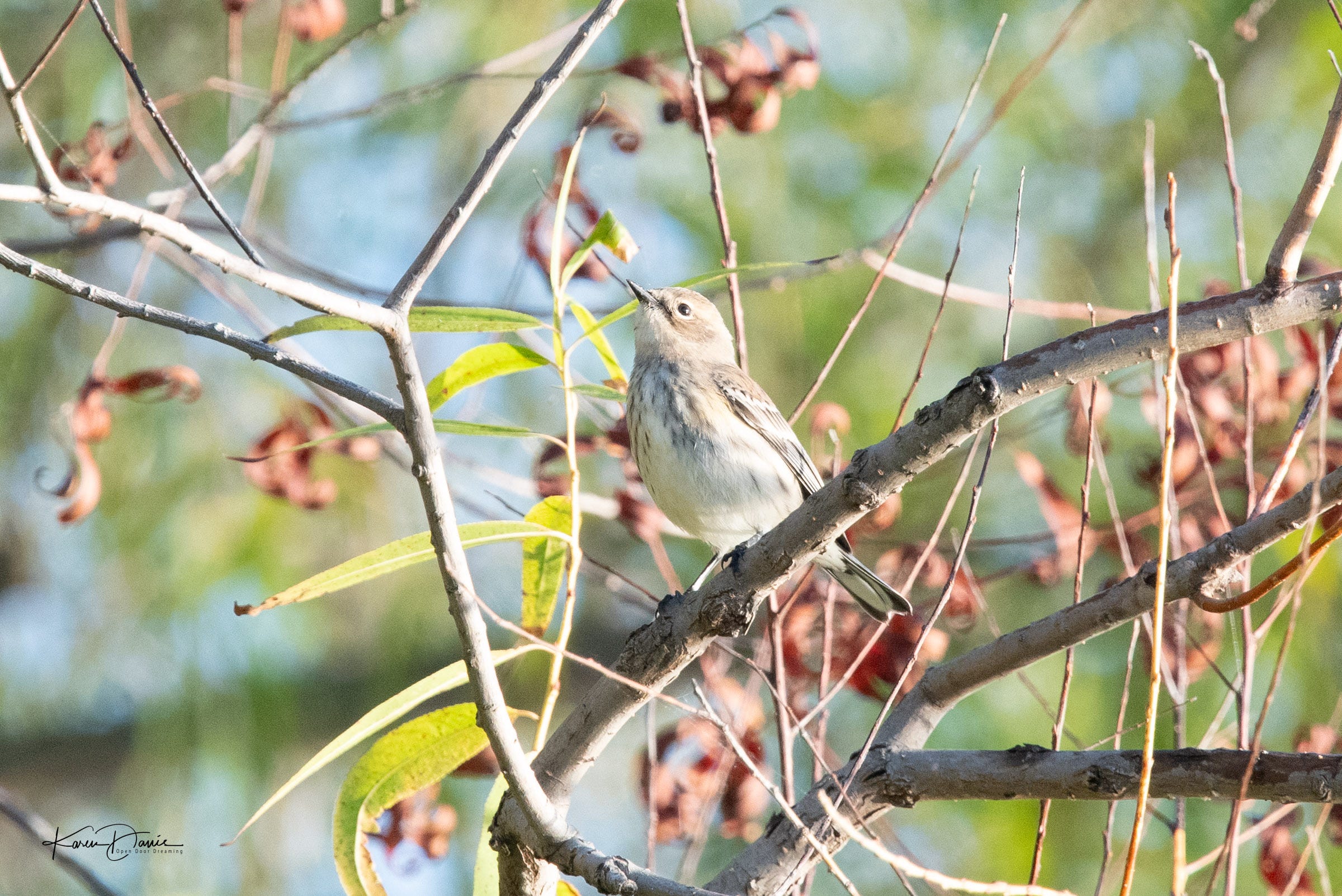 The yellow-rumped warblers have returned, too, and they flit between the bluebirds and flickers, picking bugs from the tree branches.