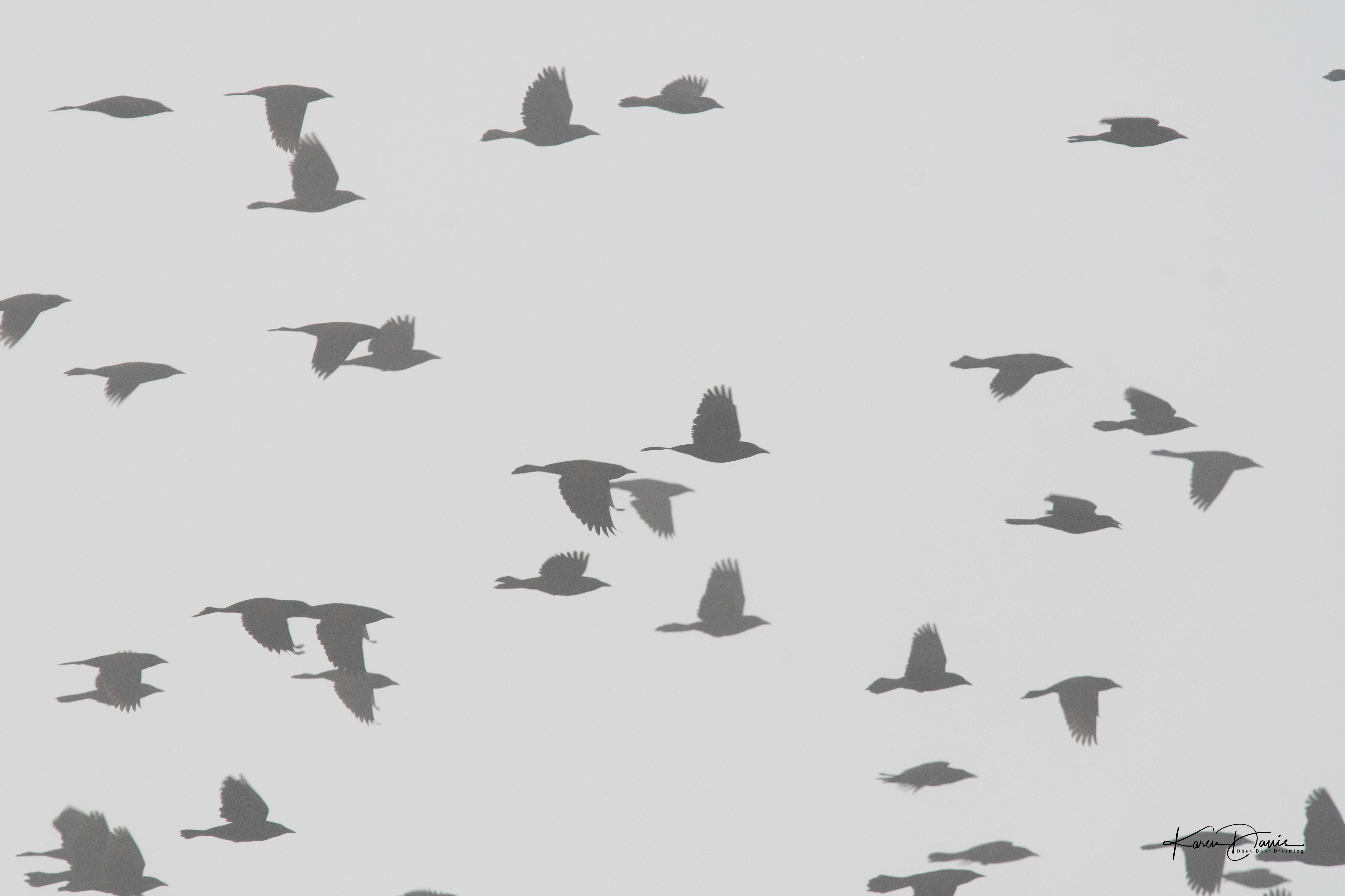 Flocks of grackles fly around the far cove, making plenty of noise but only occasionally coming close enough for me to photograph them.