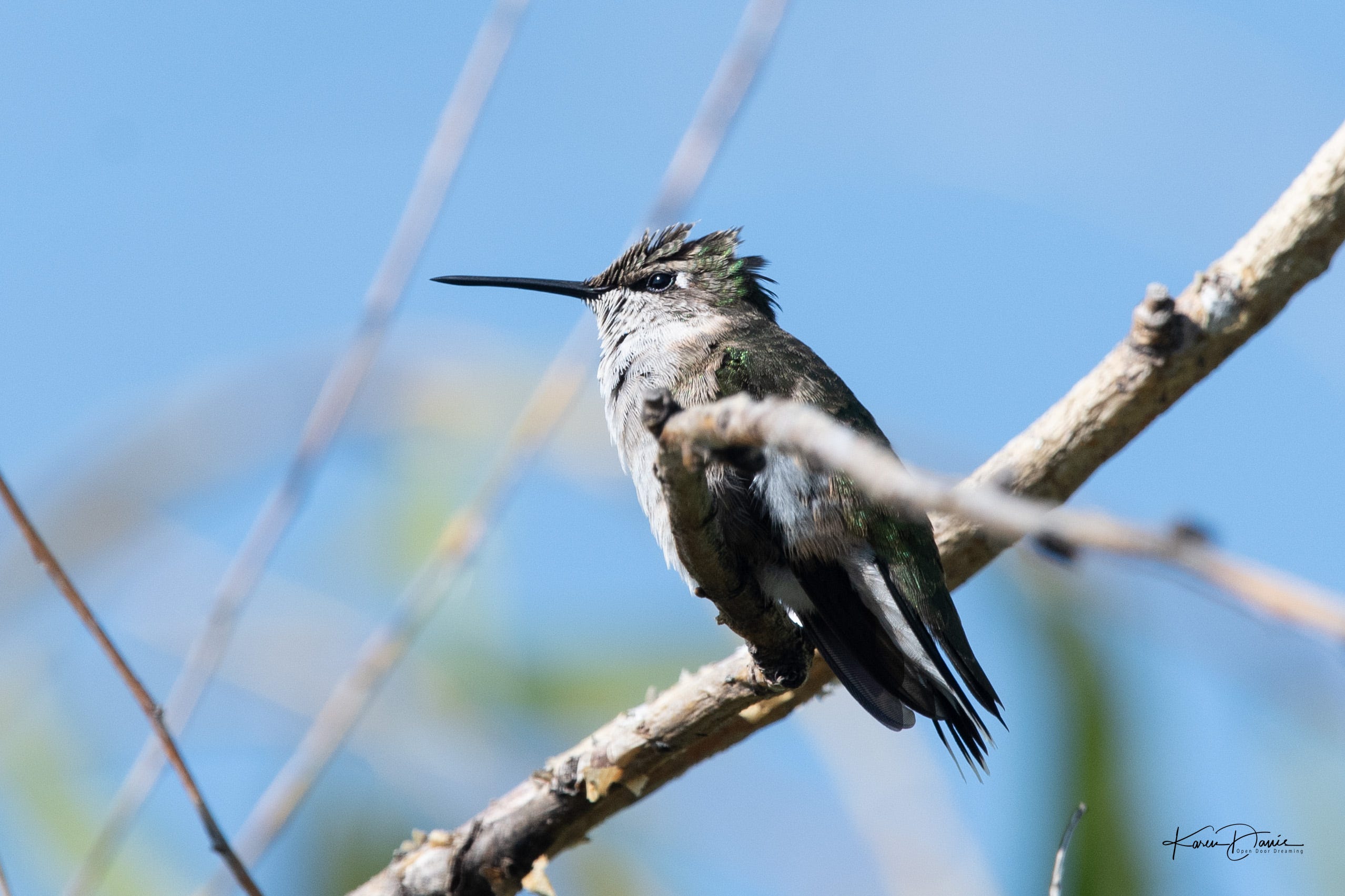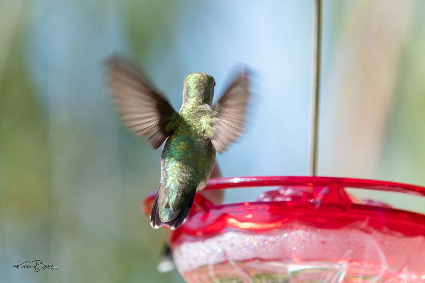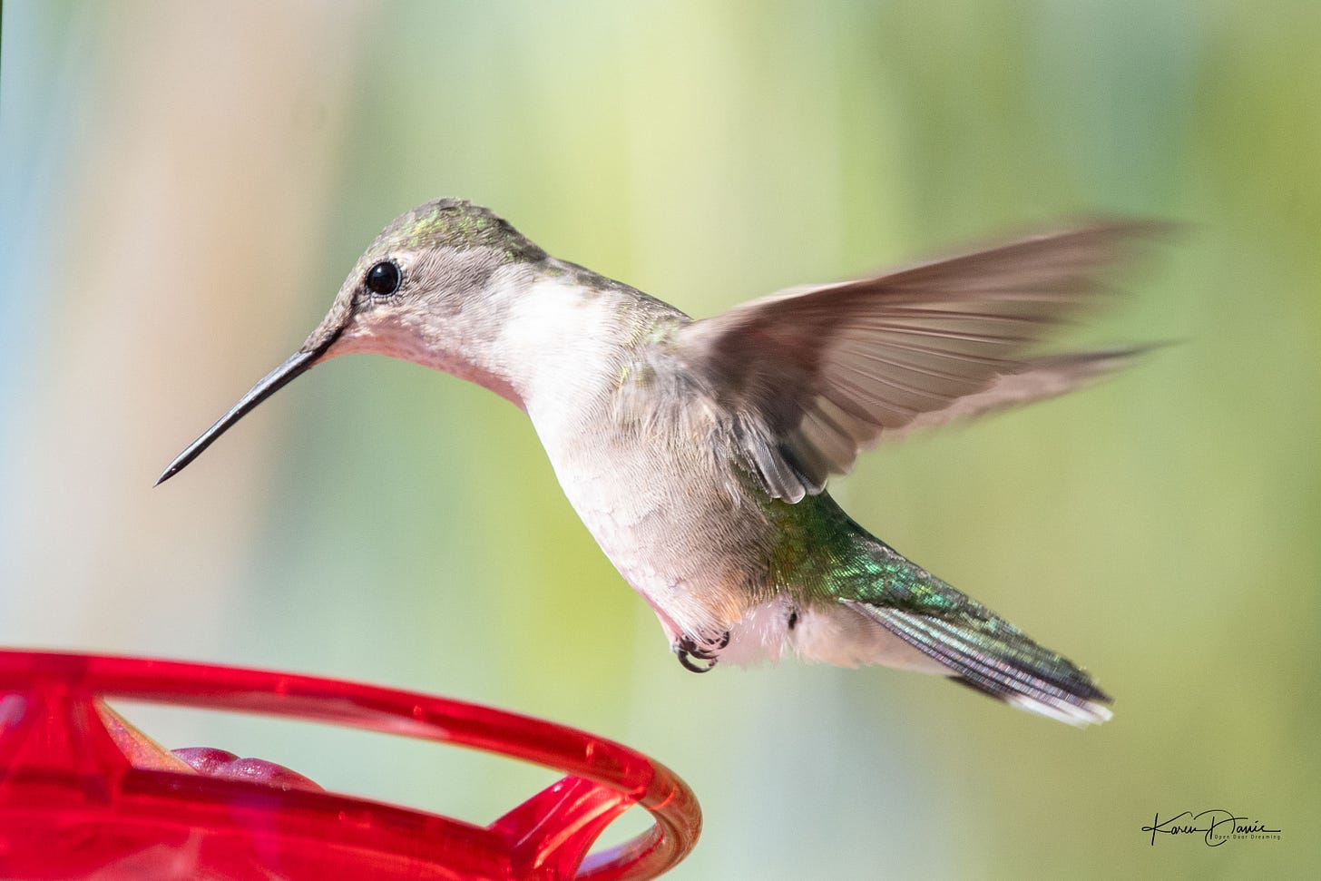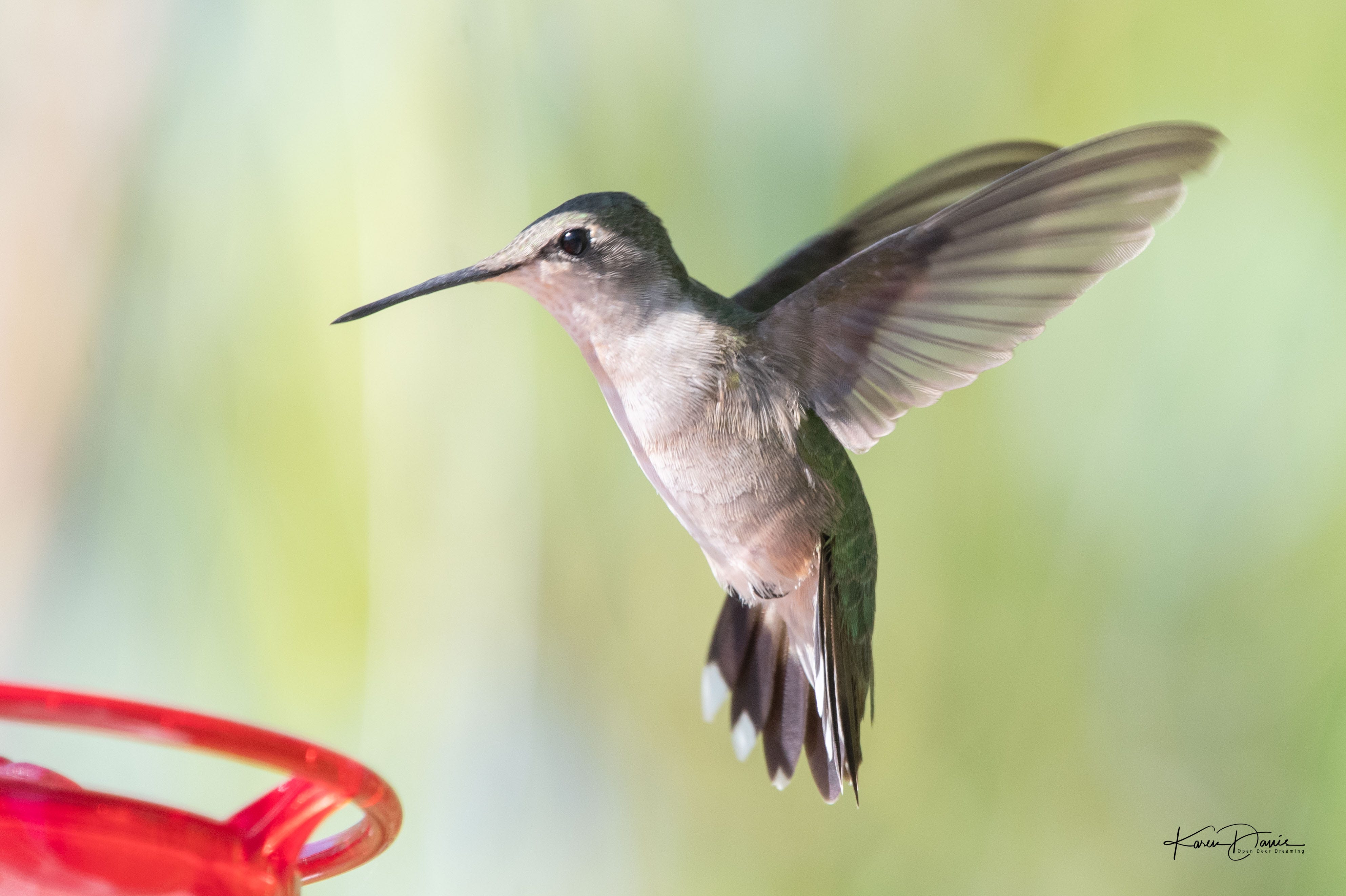 One day I had quite a “discussion” going on at the feeder between a young male and what I think is a female. She was really not into his shenanigans, but he was fiercely persistent!