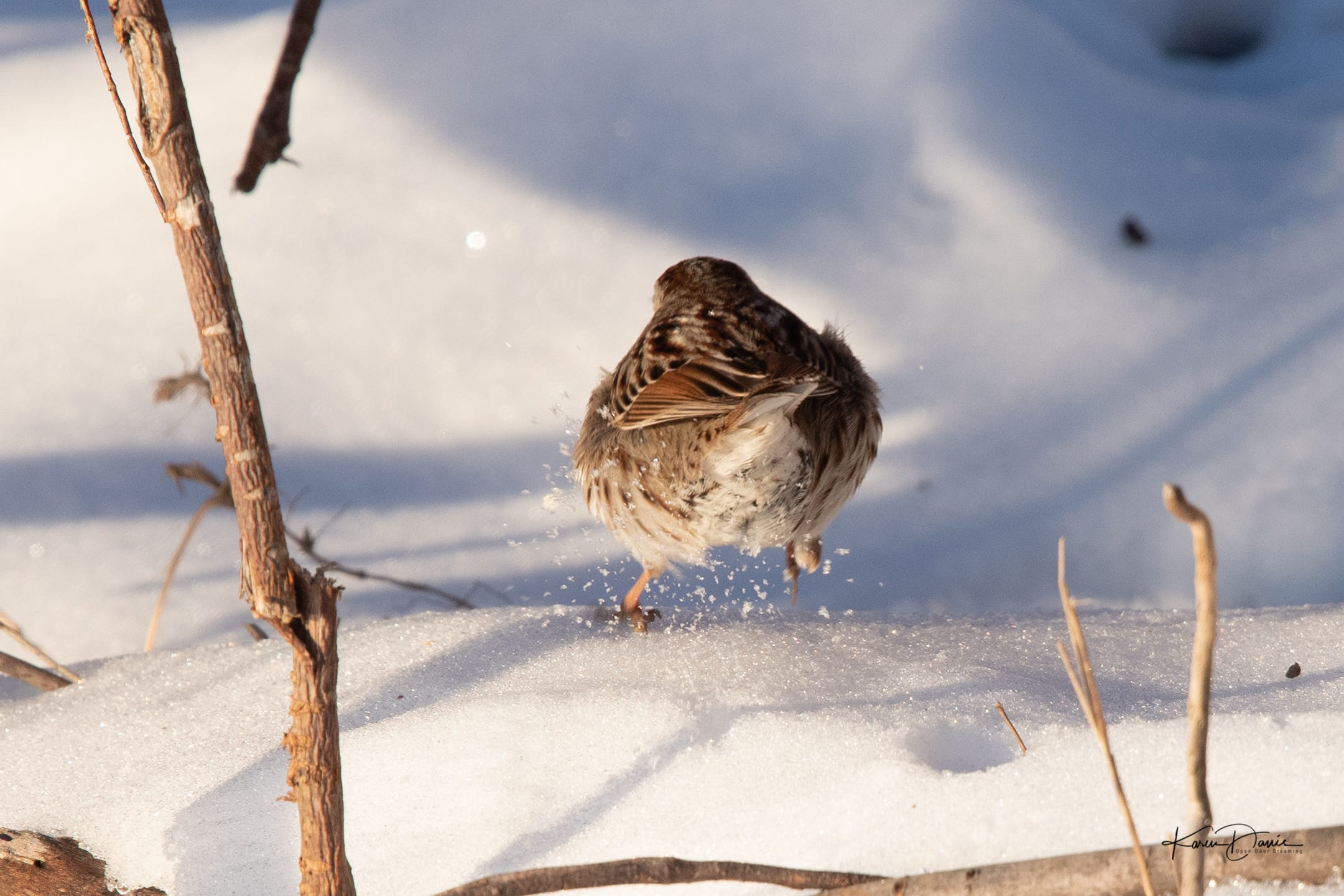 I can watch the song sparrow do his scratch-scratch dance in the snow as he looks to see what he might find beneath.