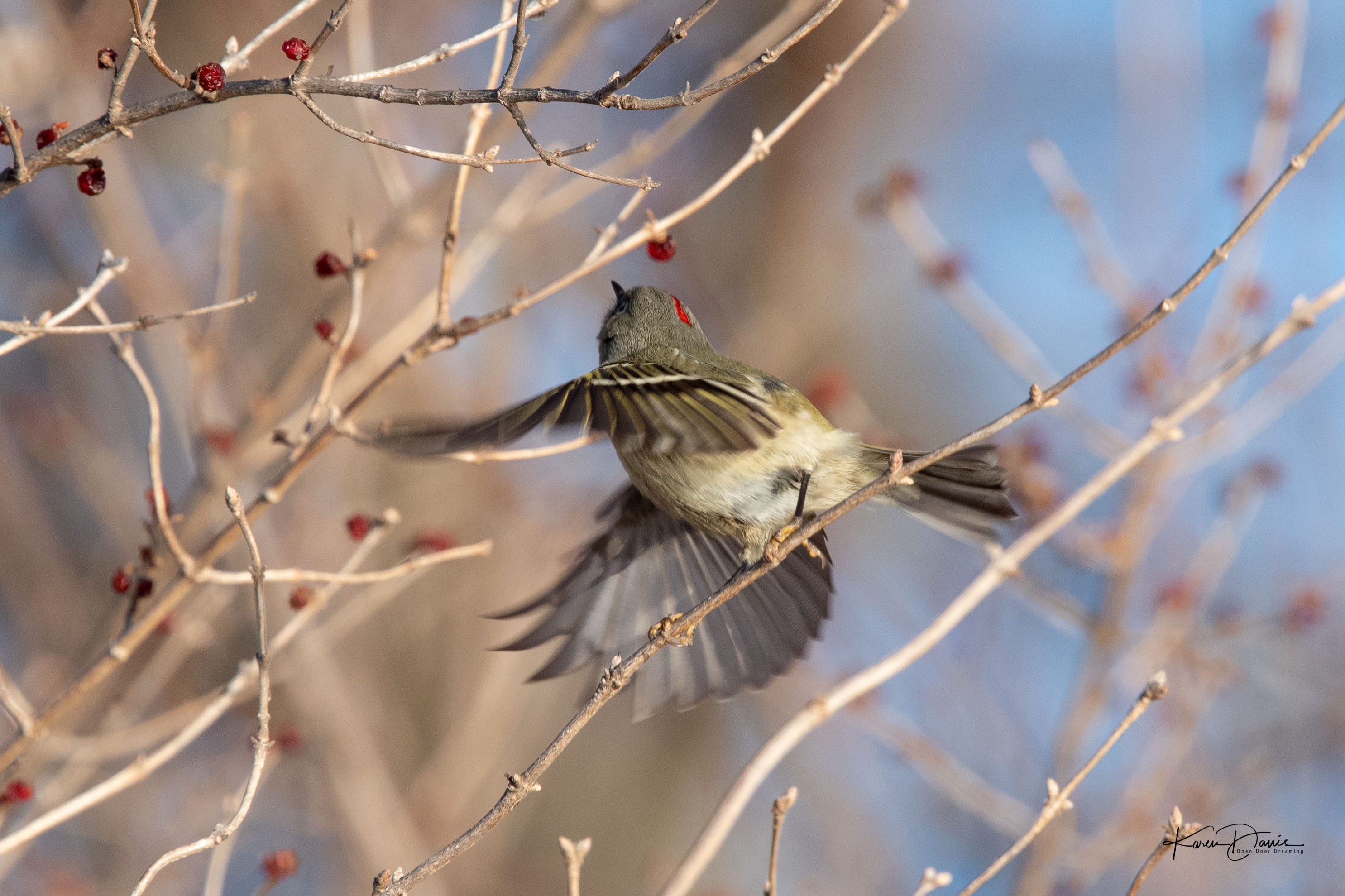 I can notice the tiny ruby-crowned kinglet as he stretches for a bug I cannot see and marvel at his determination and resilience in the cold.