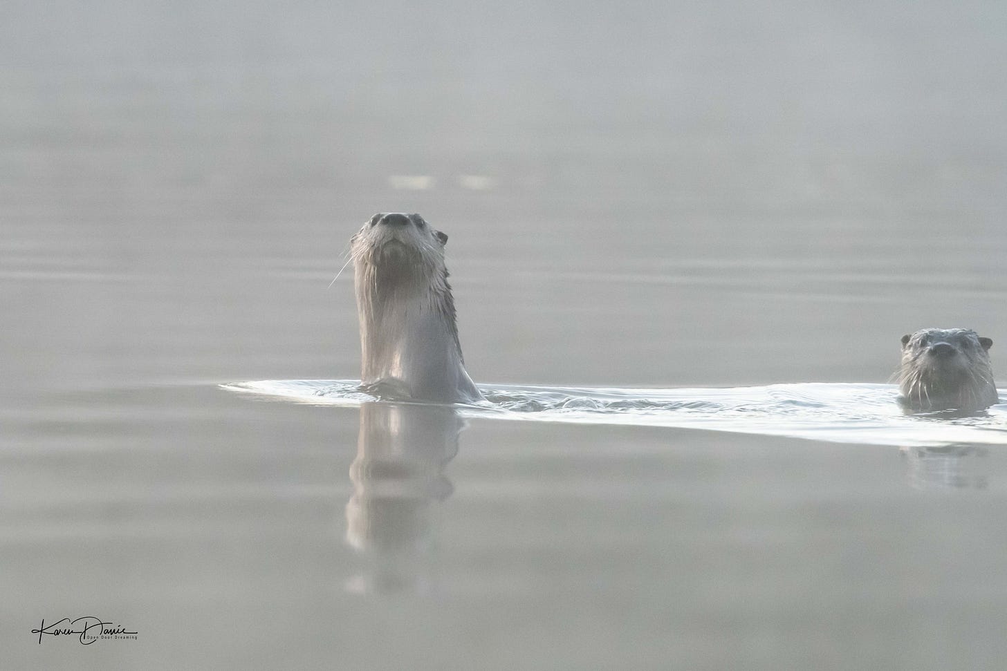 I saw four otters from across the cove and felt the electricity run through me. I sat down on the ground and hoped they would come my way. They did. Up and down they went in the water, their body arcing like a dolphin, their thin tail quickly disappearing before their head appeared again. As they approached the dock where I was sitting, they started to pop their heads out of the water one at a time, looking every bit like that whack-a-mole game in the old arcades.