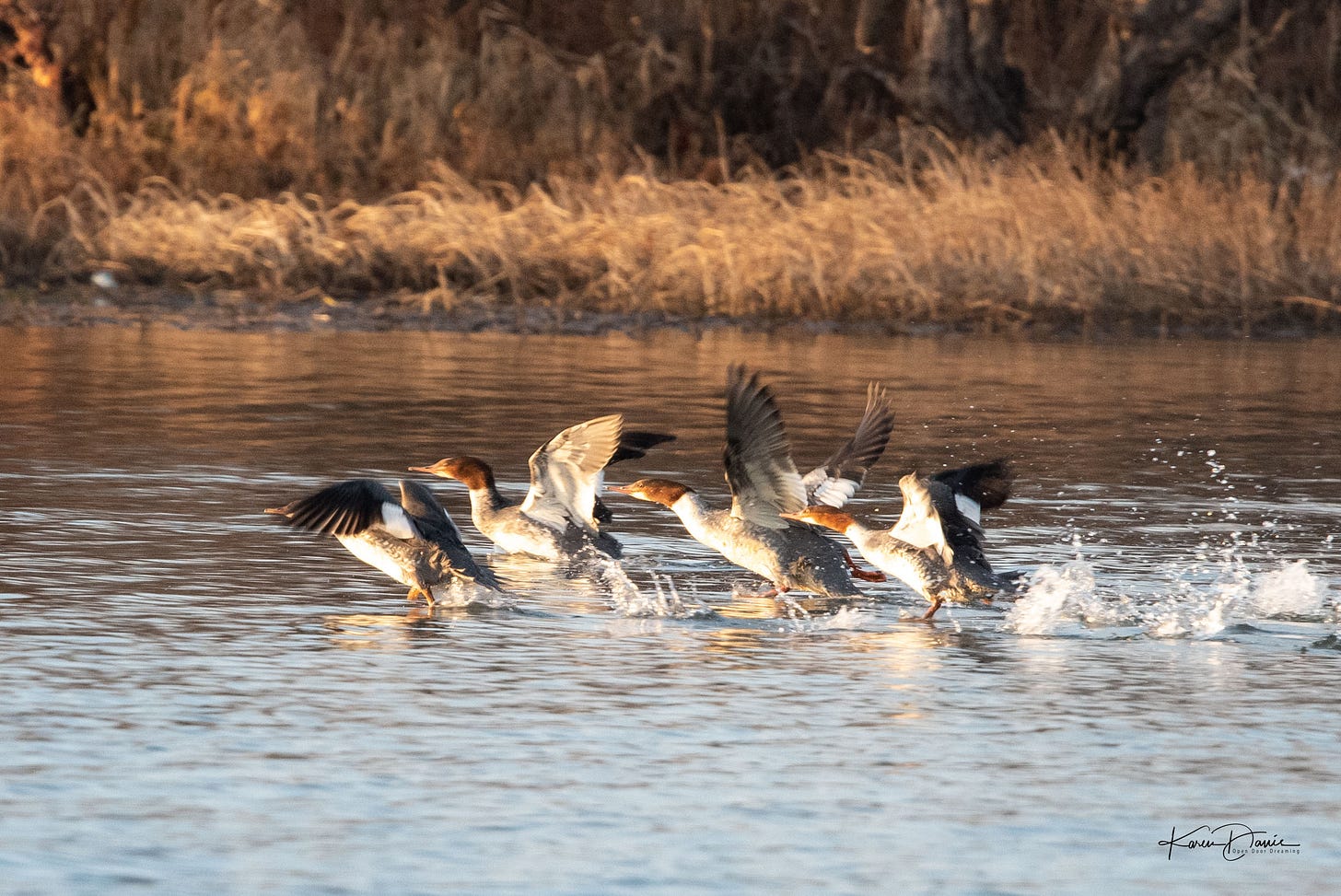 Holding my breath while common mergansers swam around the corner, hoping they wouldn’t take off. They did, but it was still magical.