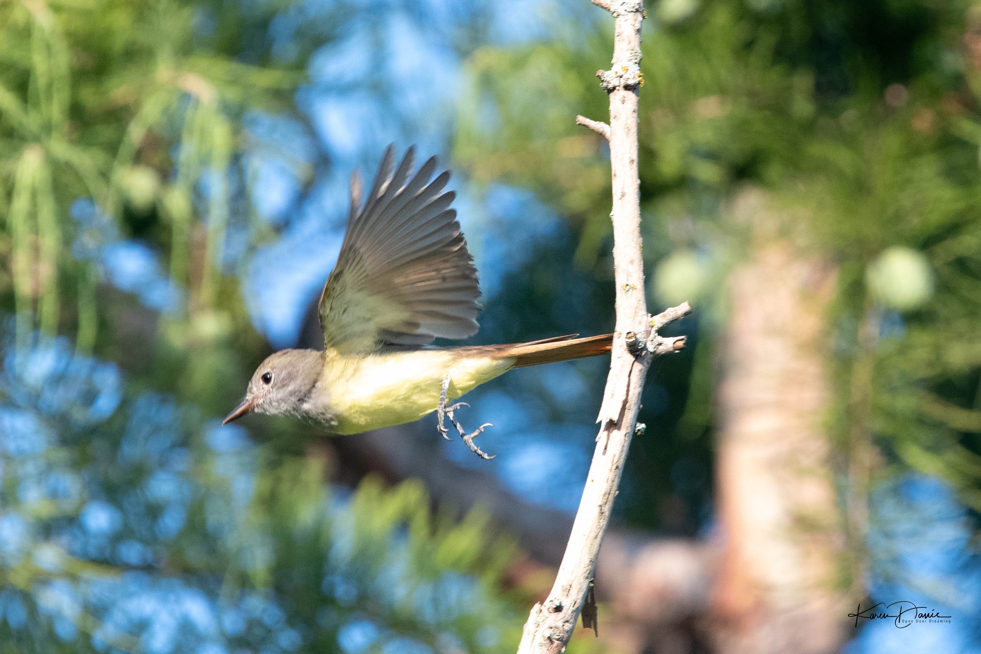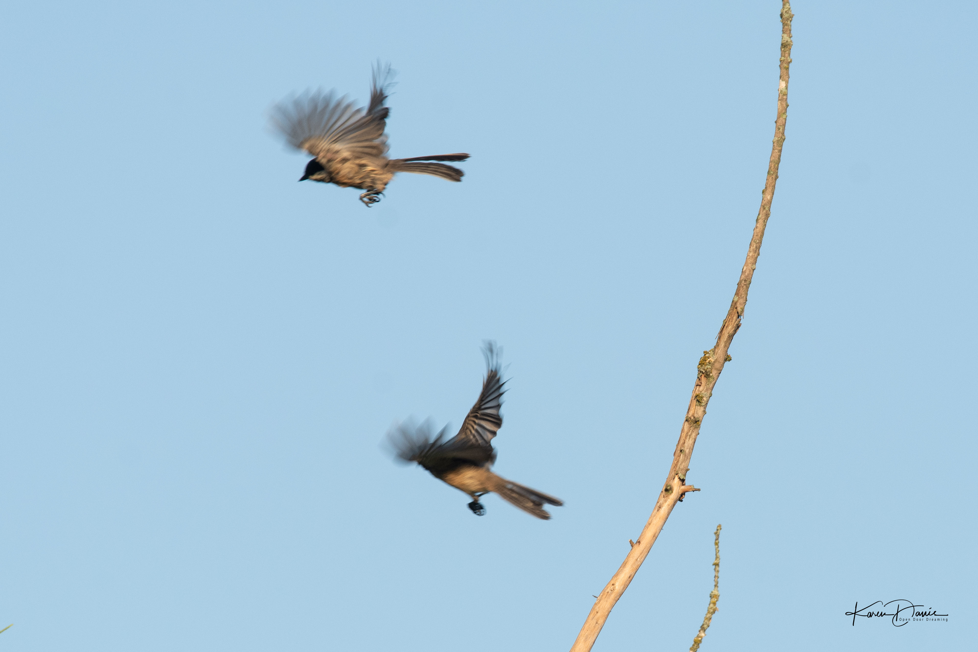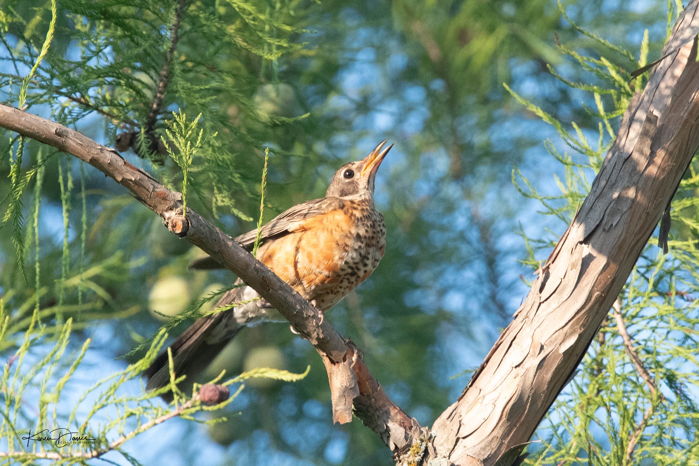 The juvenile robins, chickadees, eastern phoebes, and great-crested flycatchers join what seems to be a big, happy party. The robins and bluebirds flutter down near the grass and back up to the branches. The flycatchers and phoebes zip through and above the branches and back to their perch. The chickadees dance between the branches, buzzing as they go.