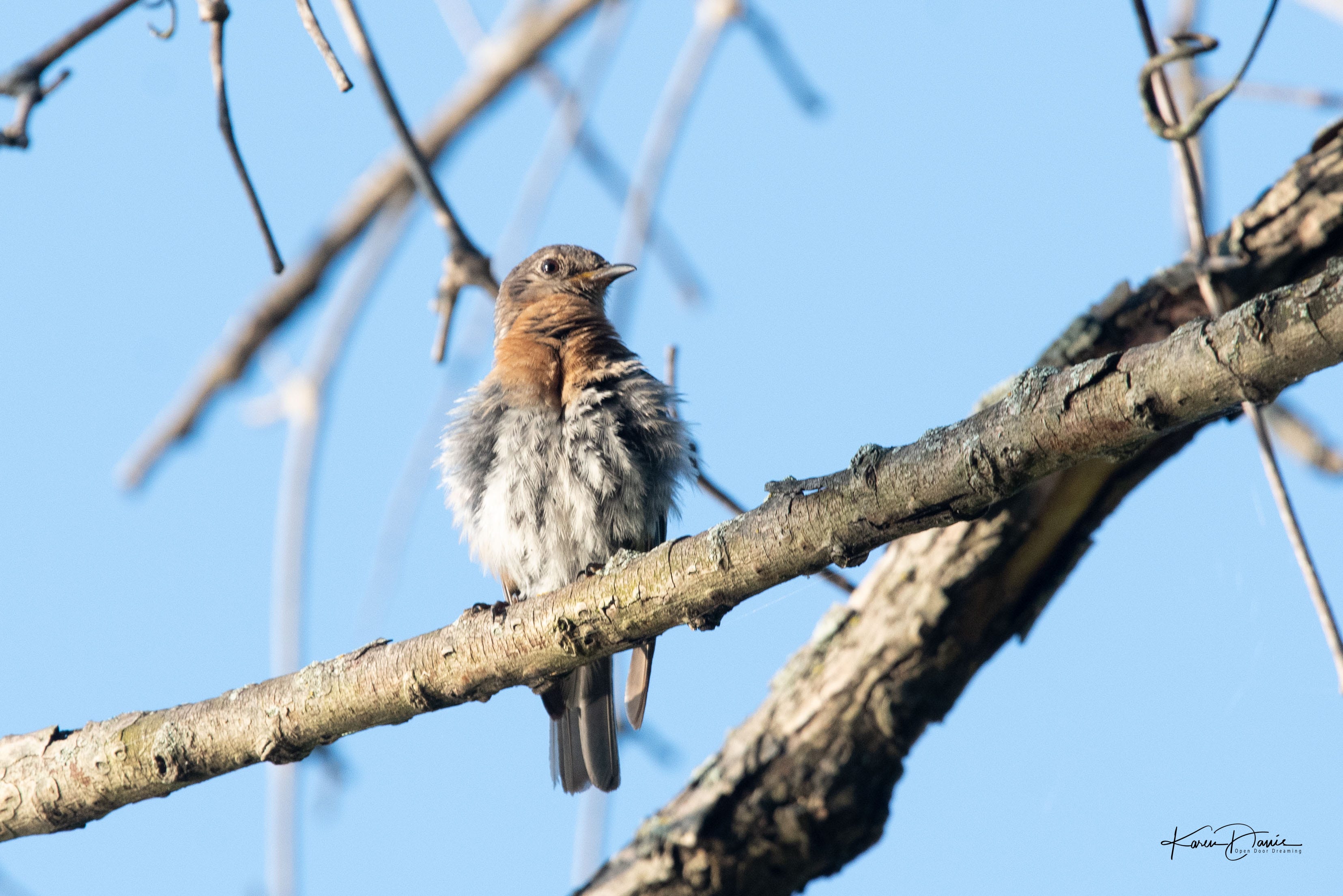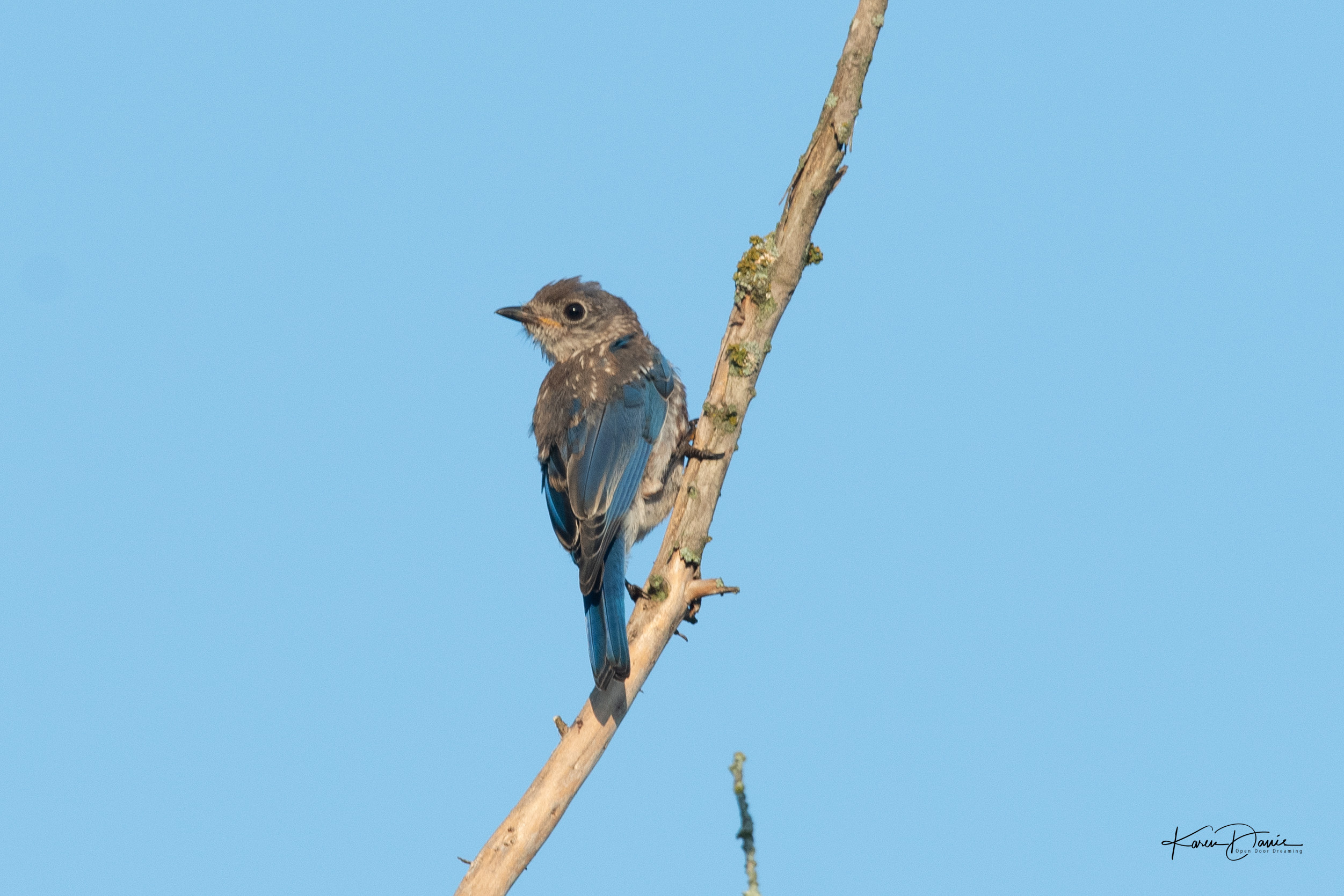 There are baby bluebirds everywhere. I have no idea where all these bluebird nests were, as I was only sporadically seeing bluebirds for the last few months. Yet everywhere I look right now, there are dozens of baby bluebirds.