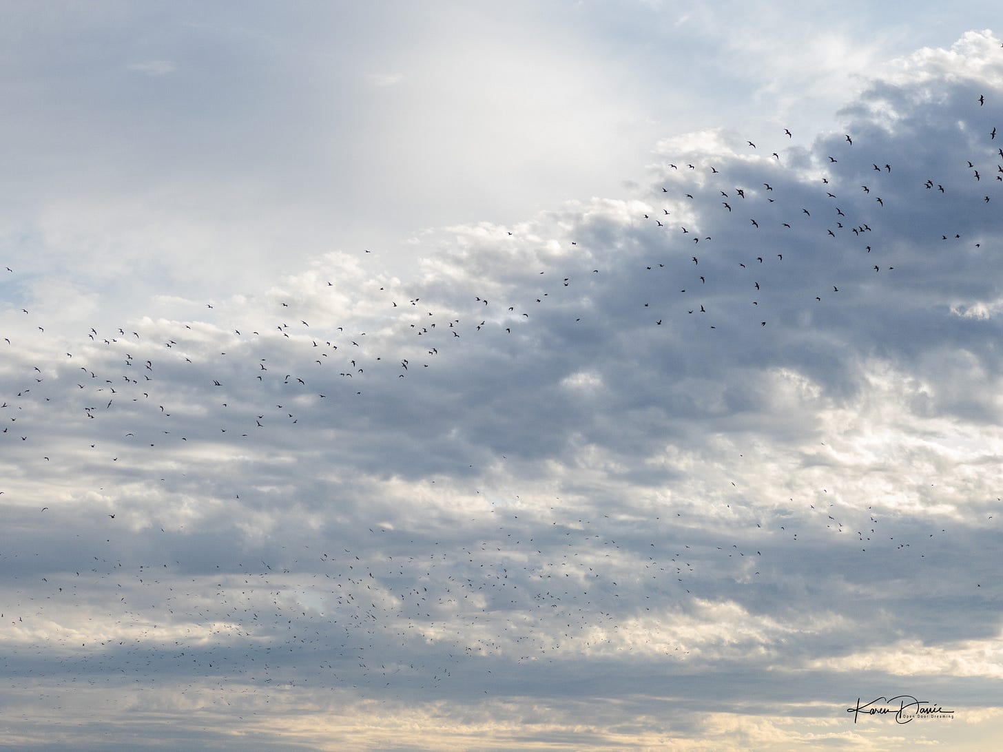 Watching large flocks of birds is one place the spiral movement becomes apparent. This fall we’ve had enormous flocks of Franklin’s gulls. Watching them spiral, I could feel my body start to move in the same way. There is something about the spiral that makes my body want to dance.