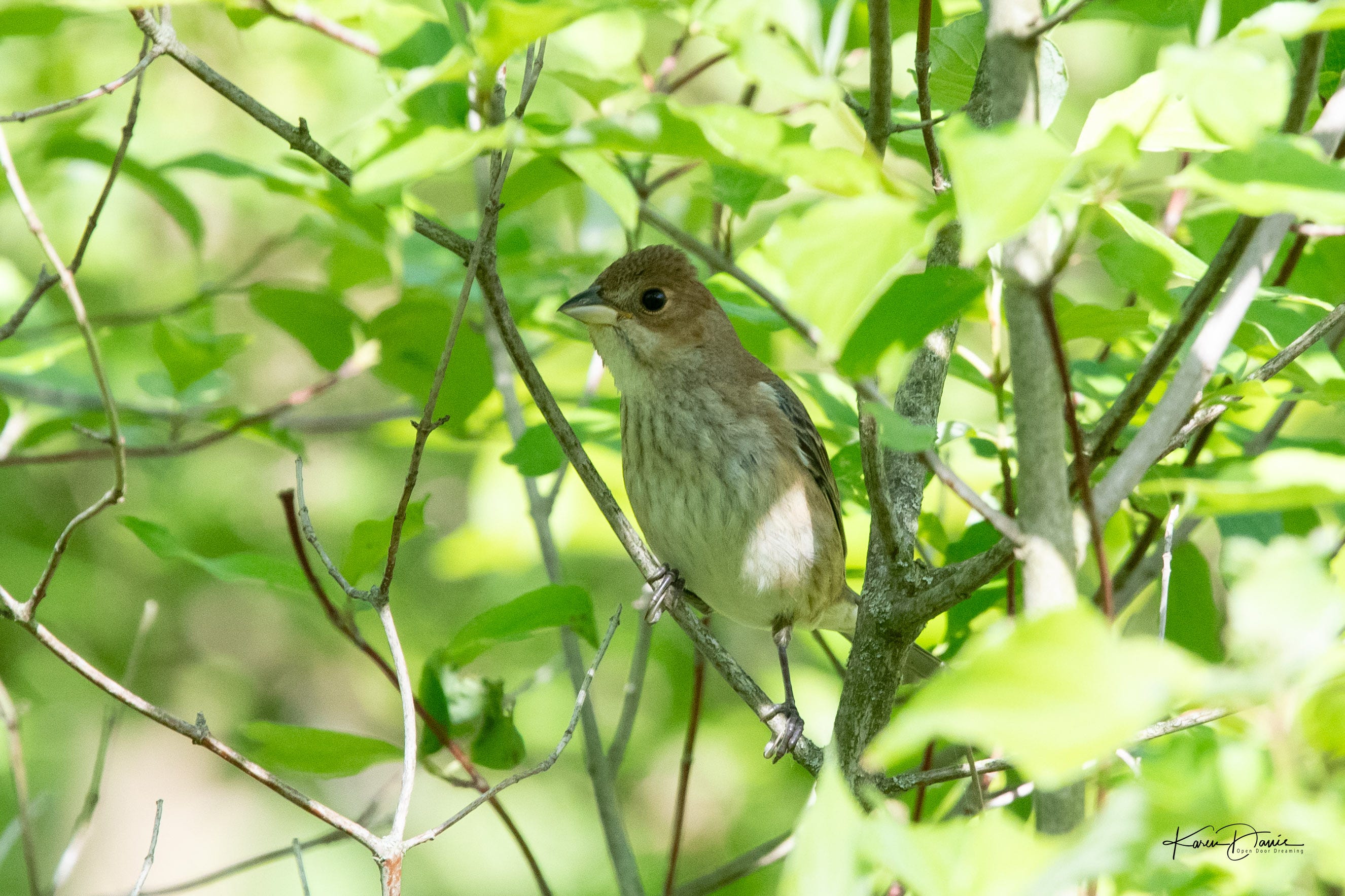 Chimney swifts swirl over my head and a small group of northern rough-winged swallows rest on nearby branches. Titmice, cardinals, and orioles are singing in the trees.
