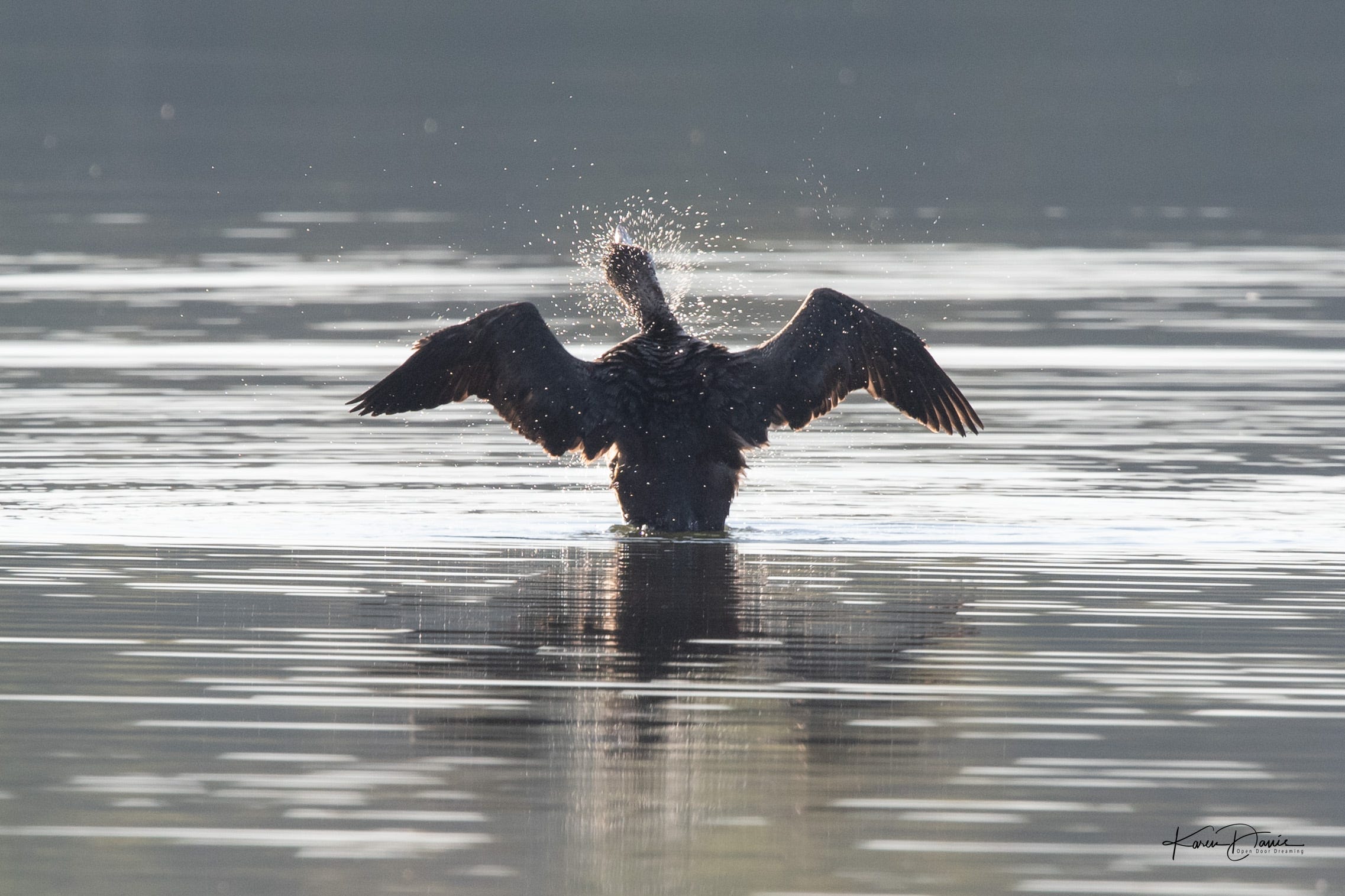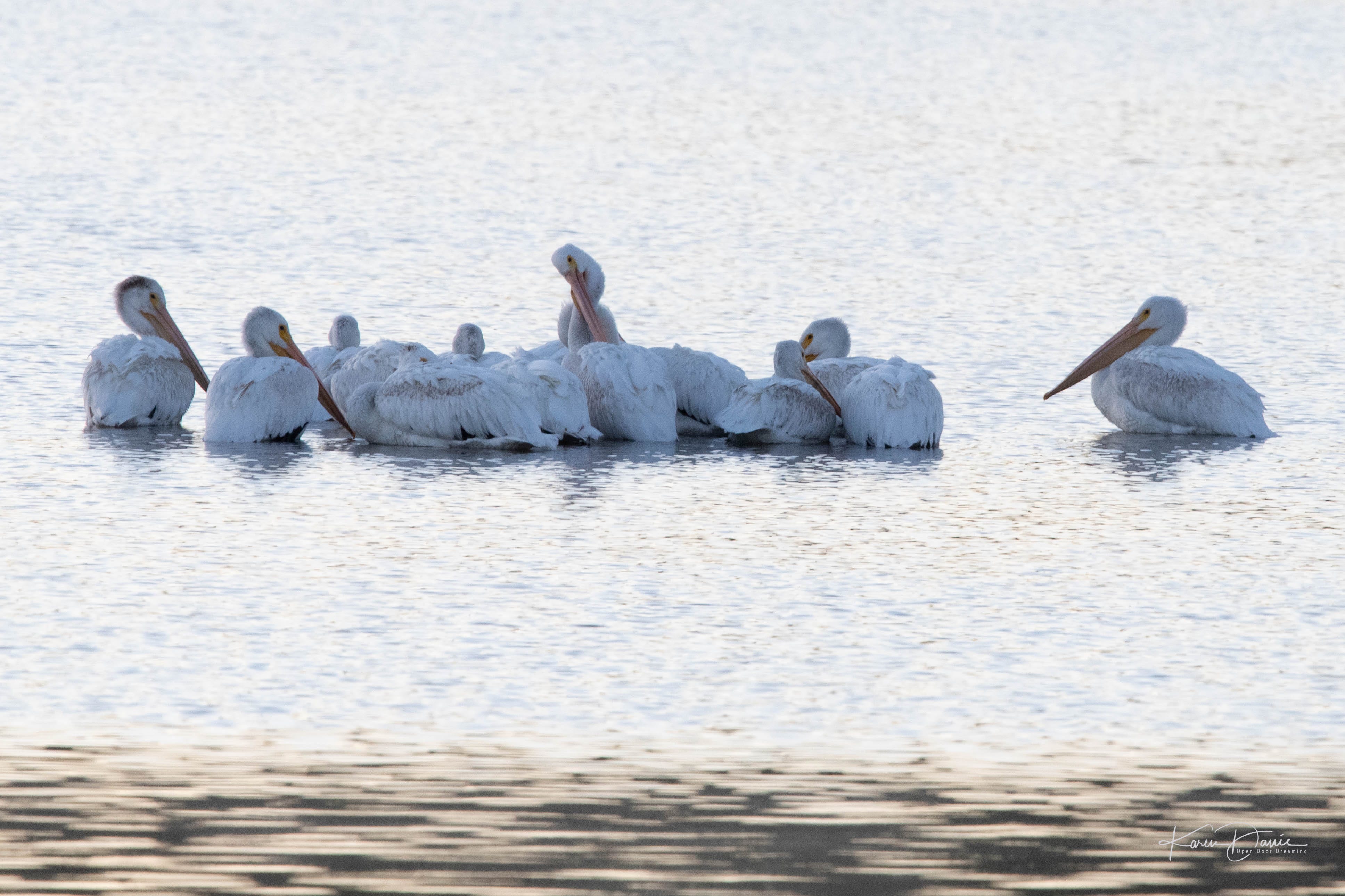 Beautifully still. Calm. Fog rises from warm water into cool air. Pelicans gently awaken. Osprey flies over my head. Franklin's gulls swirl over the lake disappearing into the newly brightened sky. Chimney swifts dot the landscape appearing and disappearing in a soft swirl of their own. Tiny feathers left by roosting geese glimmer in the sunlight. My late September home is quiet but alive welcoming those who travel through.