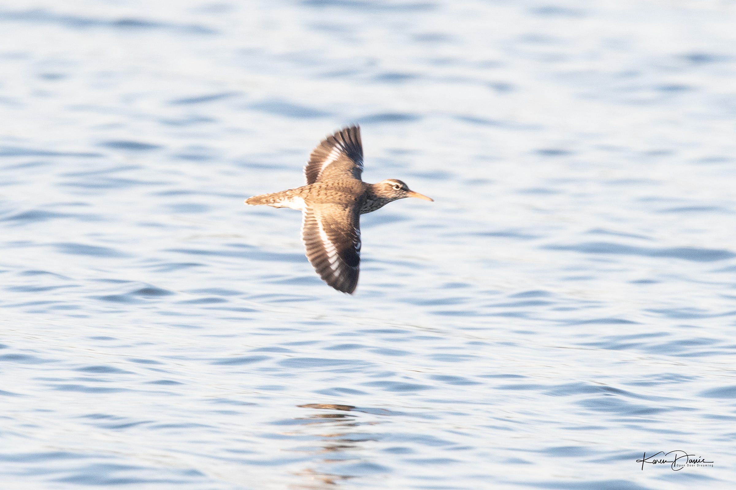 As the sun rises over the tops of the trees, I survey the lake. Swallows are flying over the surface of the lake, perhaps tree swallows and cliff swallows, though they are too far away for me to be sure. A few spotted sandpipers land on the rocks nearby. I can hear a yellow warbler, a Baltimore oriole, and a red-winged blackbird in the nearby trees.