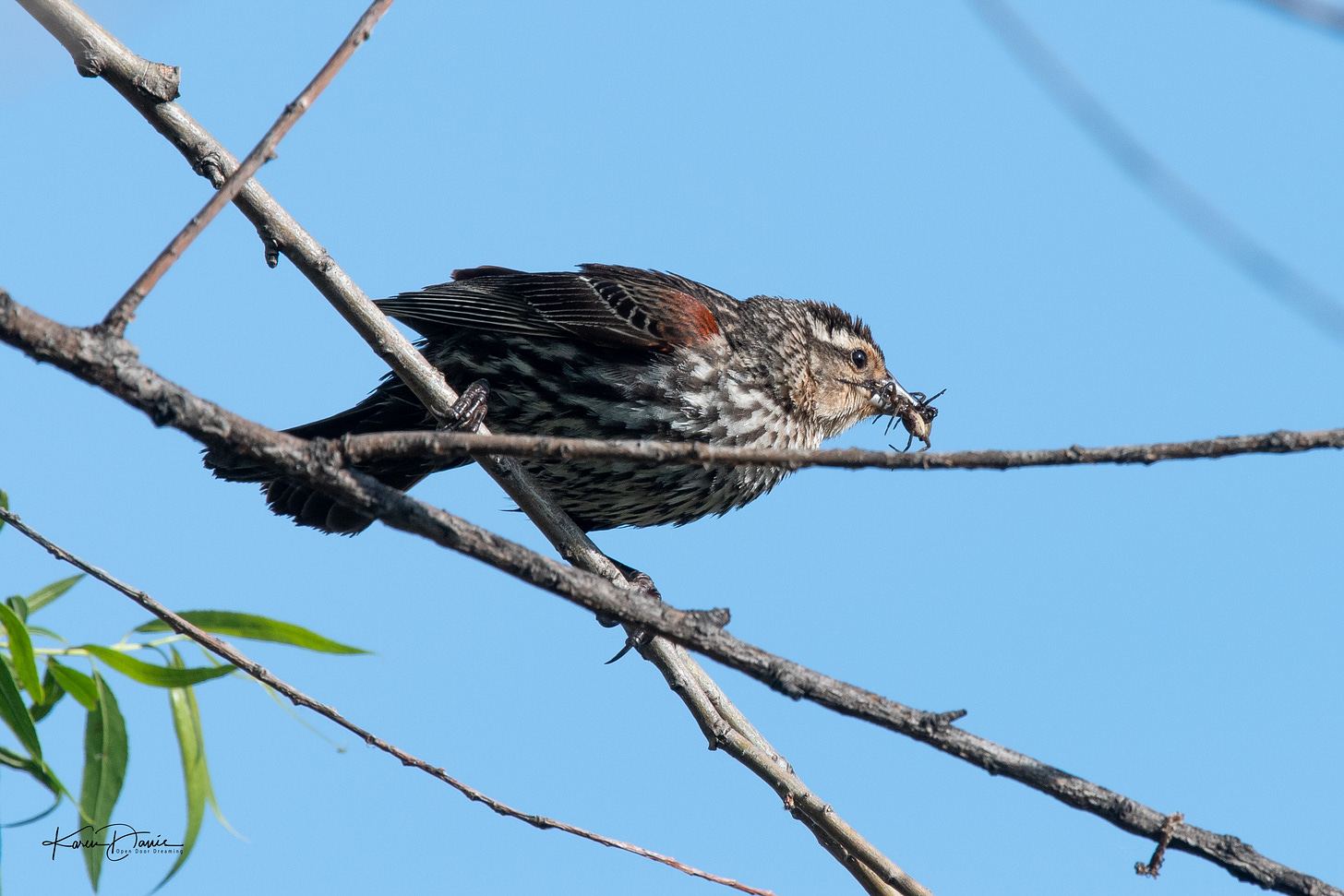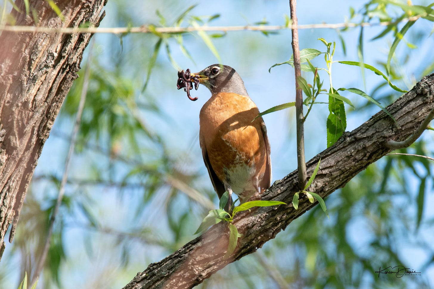Papa birds are defending their young ones and in many cases helping with the care and feeding of the young. Yesterday was the one sunny day and I found red-winged blackbirds, brown thrashers, robins, barn swallows, chimney swifts, goldfinches, dickcissels and mockingbirds all busy gathering food for their nests.