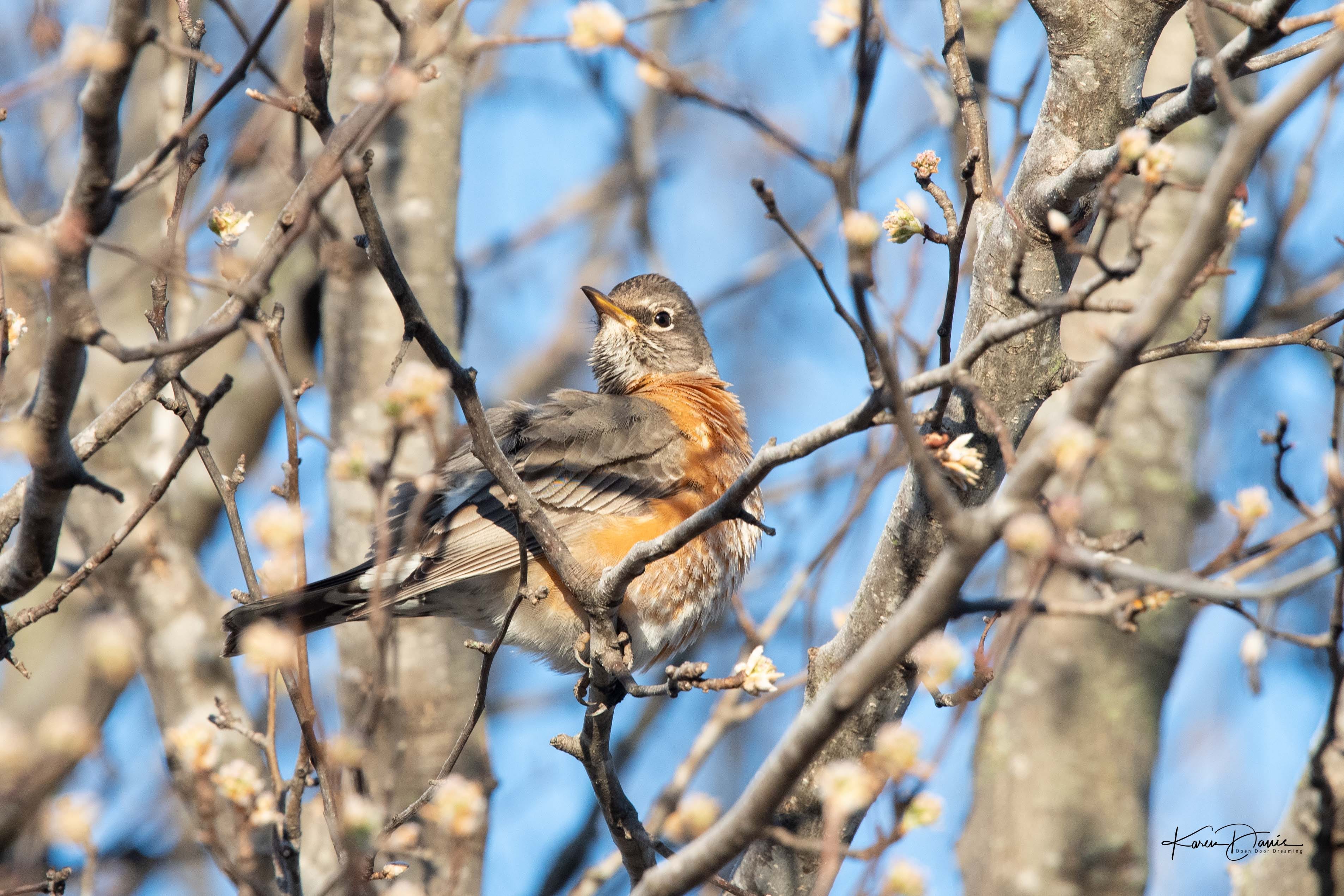 Each day this week I’ve watched them, though I’ve never seen quite as many as I did on Tuesday. Perhaps they scatter in different directions most of the time? As I pondered the new lunar year, I pondered the robins that were suddenly filling my world. The element of wood in Chinese medicine is associated with the season of spring. Robins are also associated with the season of spring.