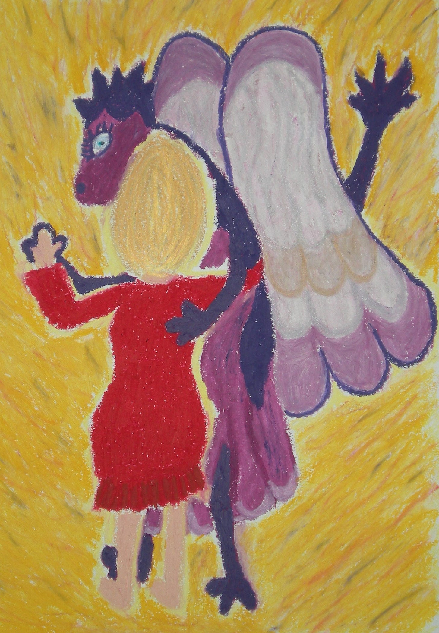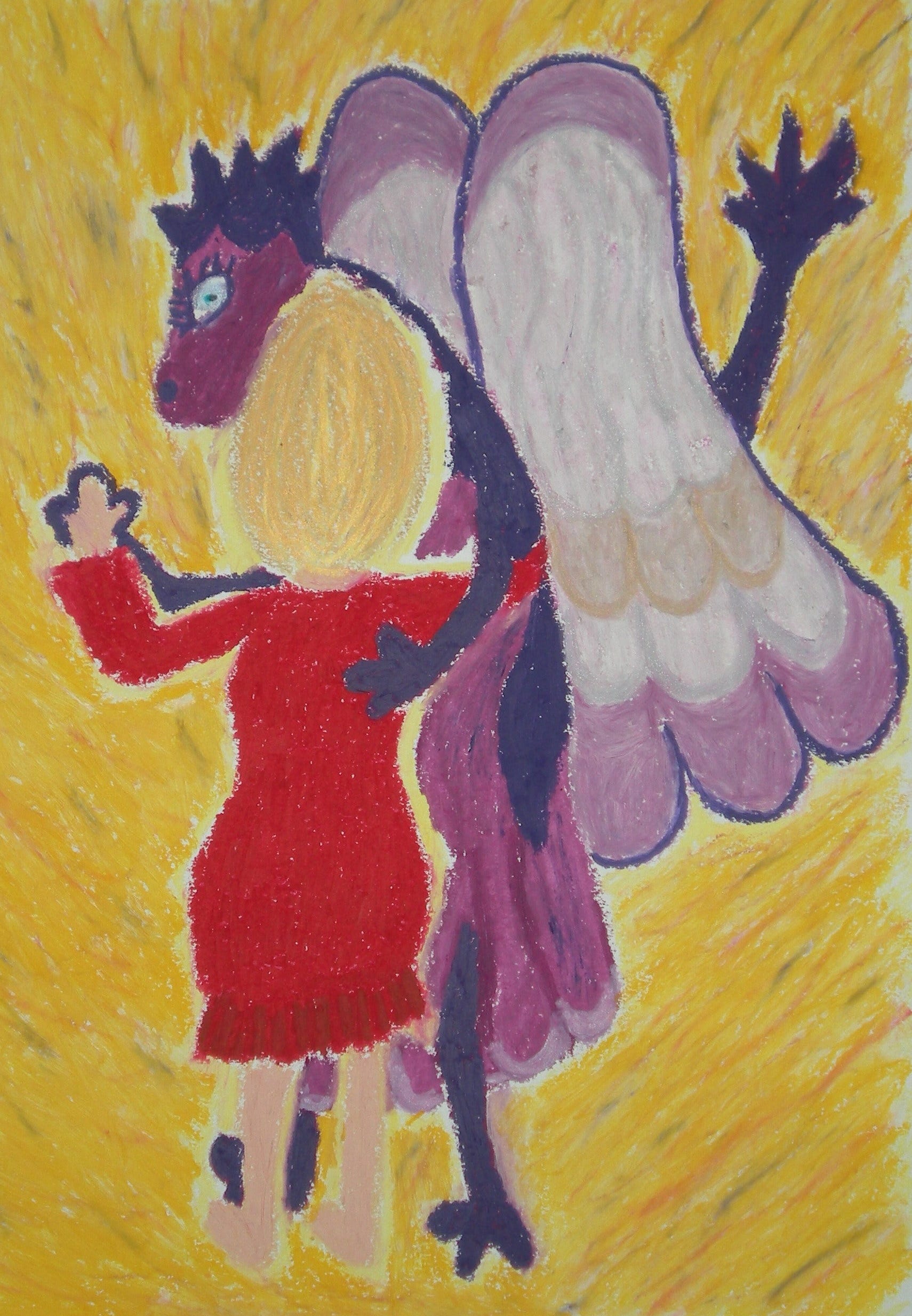 I don’t know much about dragons, having never seen one. A decade ago when I was drawing, I drew a lot of dragons. My dragons were more “puff the magic dragon” than fearsome creatures. I remember writing the word “misunderstood” more than once. My feeling sense is that dragons are creatures to be embraced and worked with rather than feared and attacked. Here is one of my favorite dragon drawings from my archive which probably conveys my feelings about dragons: