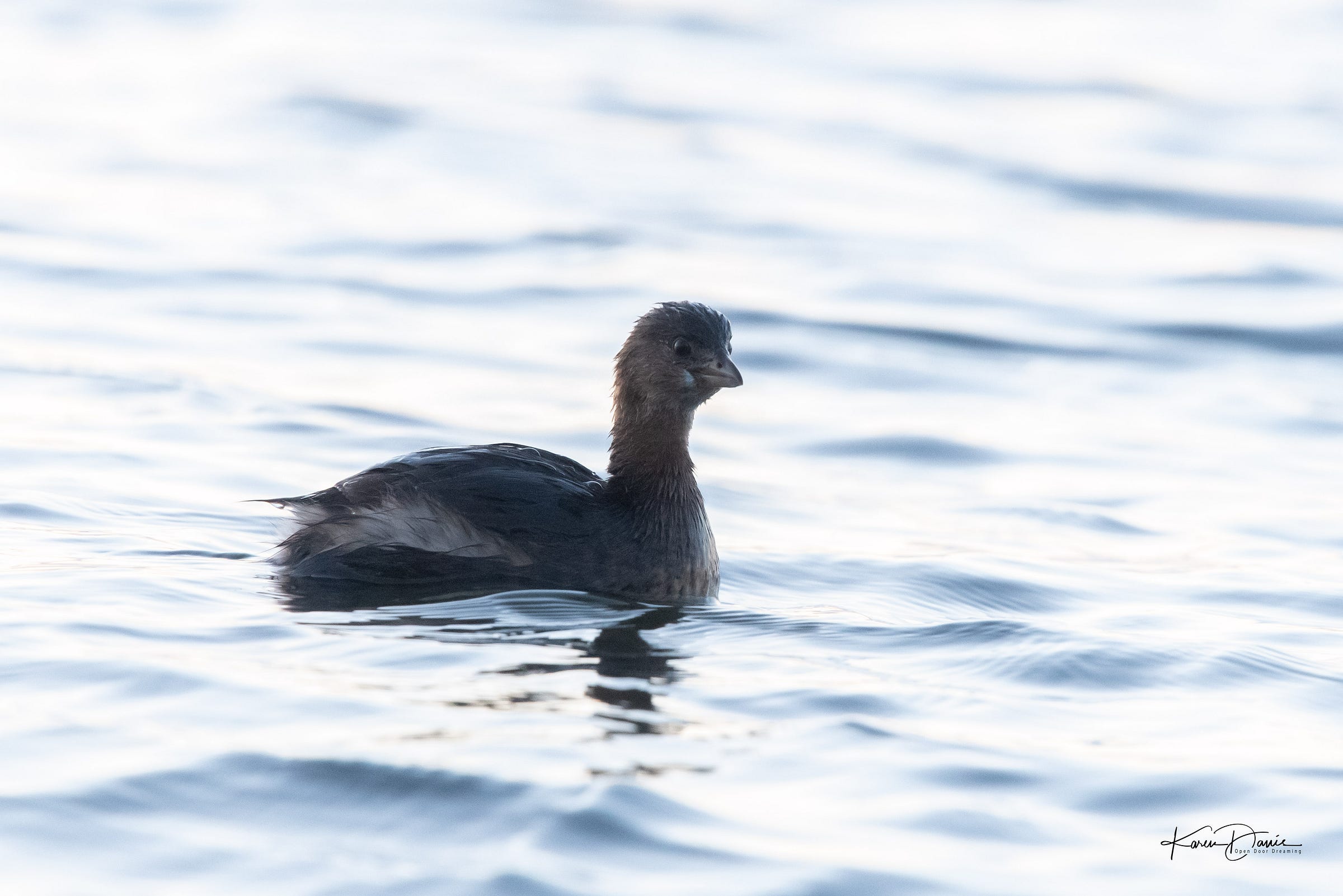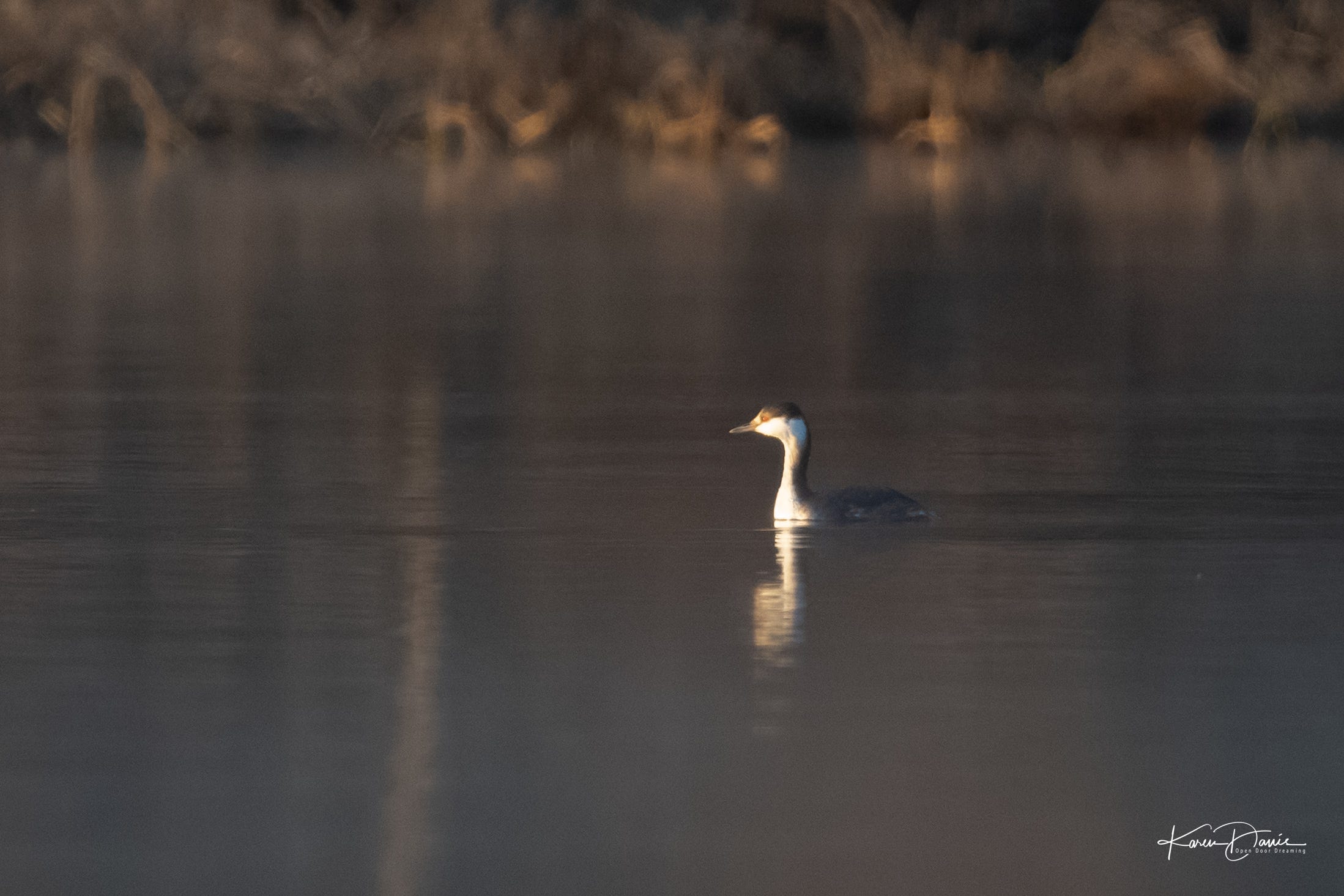 What’s here now are the grebes swimming quietly into the cove. The pied-billed grebes are more common, but I have also seen a horned grebe this week. They’ve donned their more muted winter colors, and I seem to have donned mine as well. It’s funny how I’m drawn to different color clothing in the winter than in the summer months.