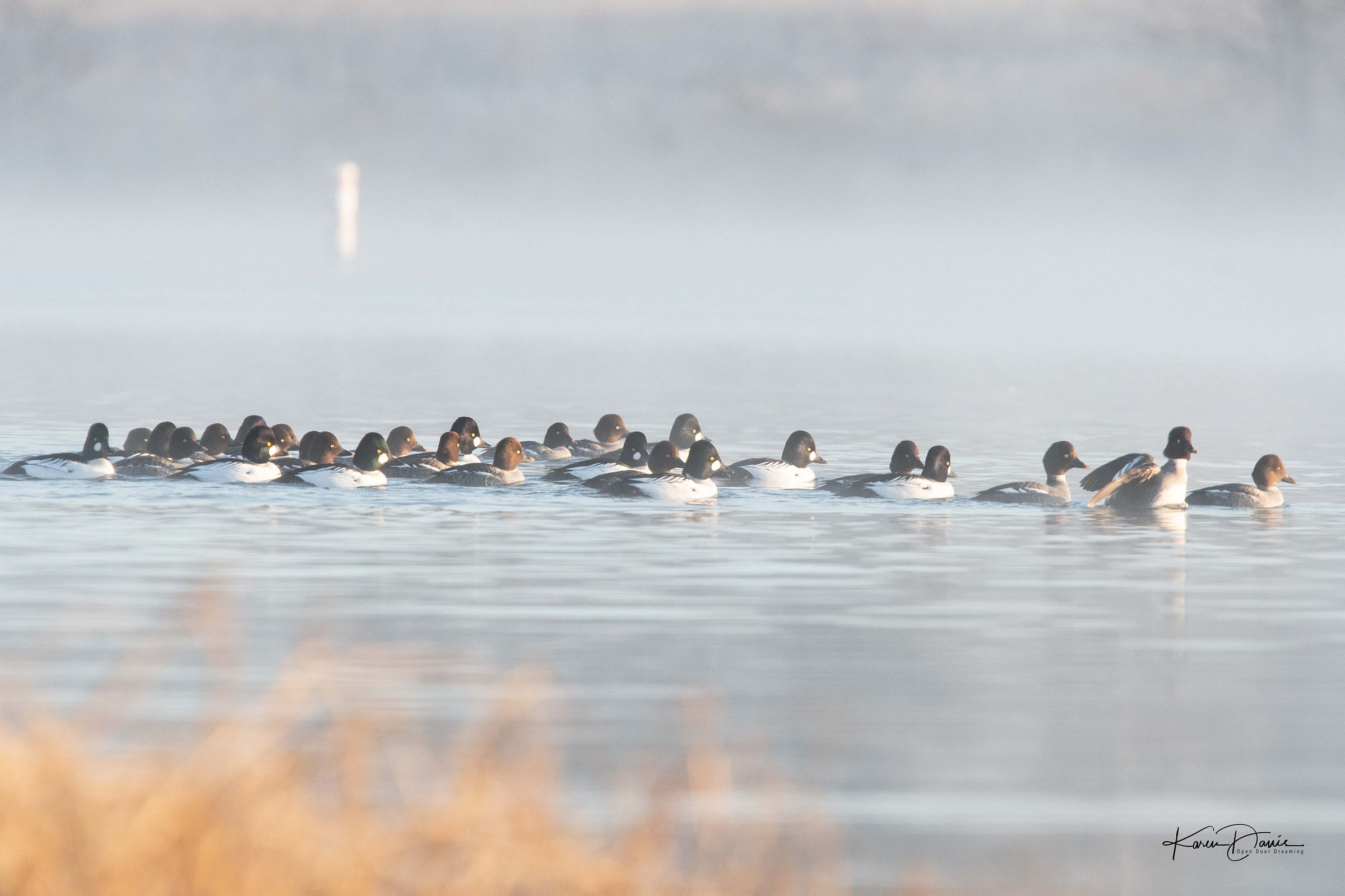 What’s here now are winter ducks. My survey of the lake most mornings yields common goldeneyes, hooded mergansers, a few greater or lesser scaups, and occasionally a ruddy duck.
